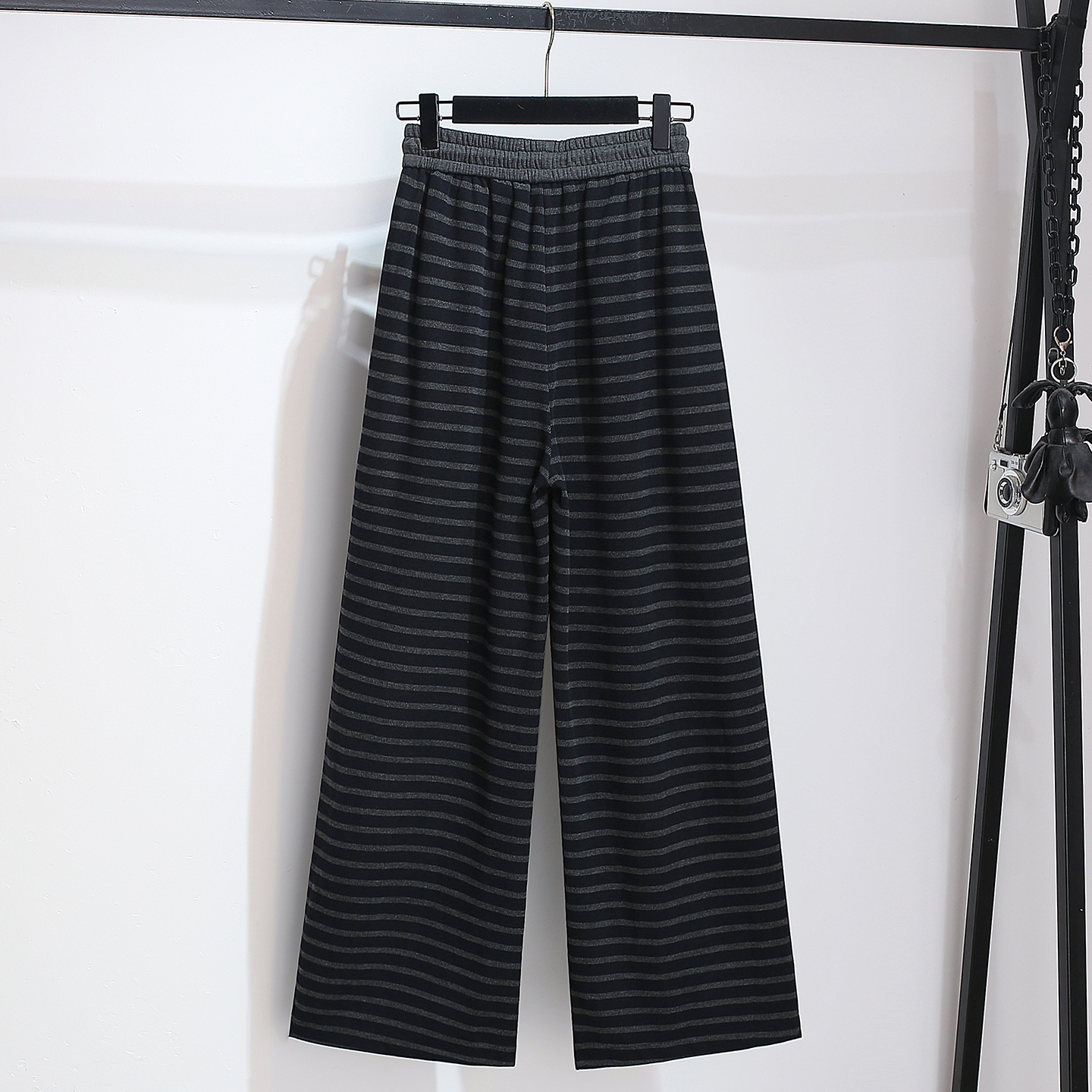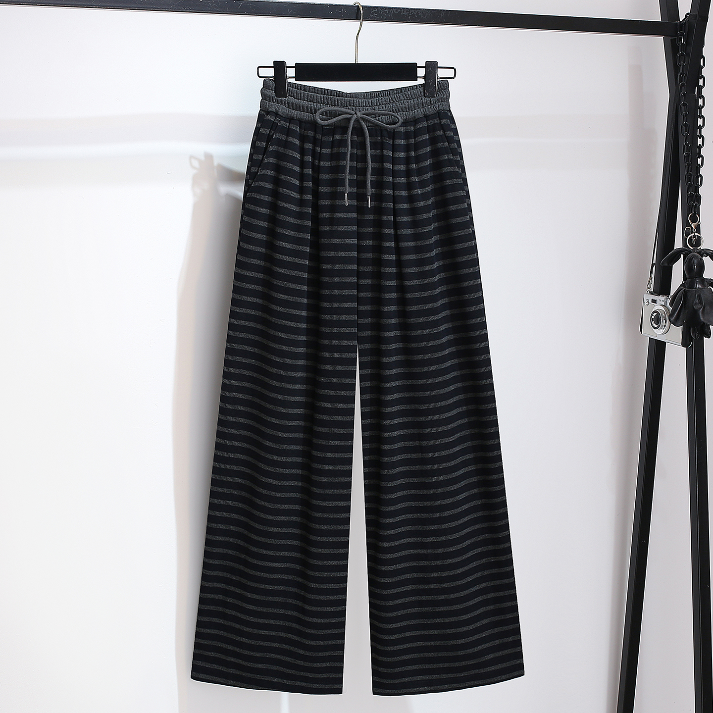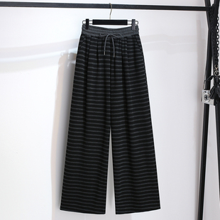 爆款 直筒拖地遛弯裤 休闲阔腿针织条纹裤 新款 子女2025春秋季 超火