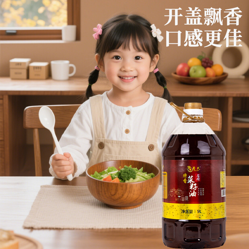 蜀民正宗四川特香菜籽油食用油非转基因炒熟压榨大桶5L纯香家用
