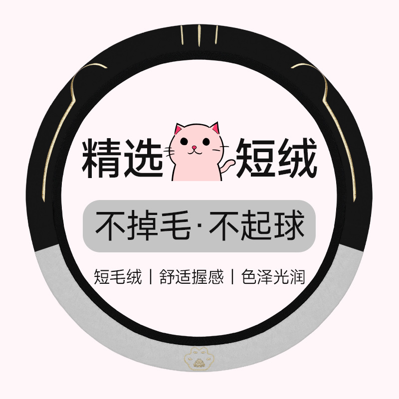 汽车方向盘套冬季 女 毛绒保暖防滑防冻可爱卡通方向盘套通用型新款