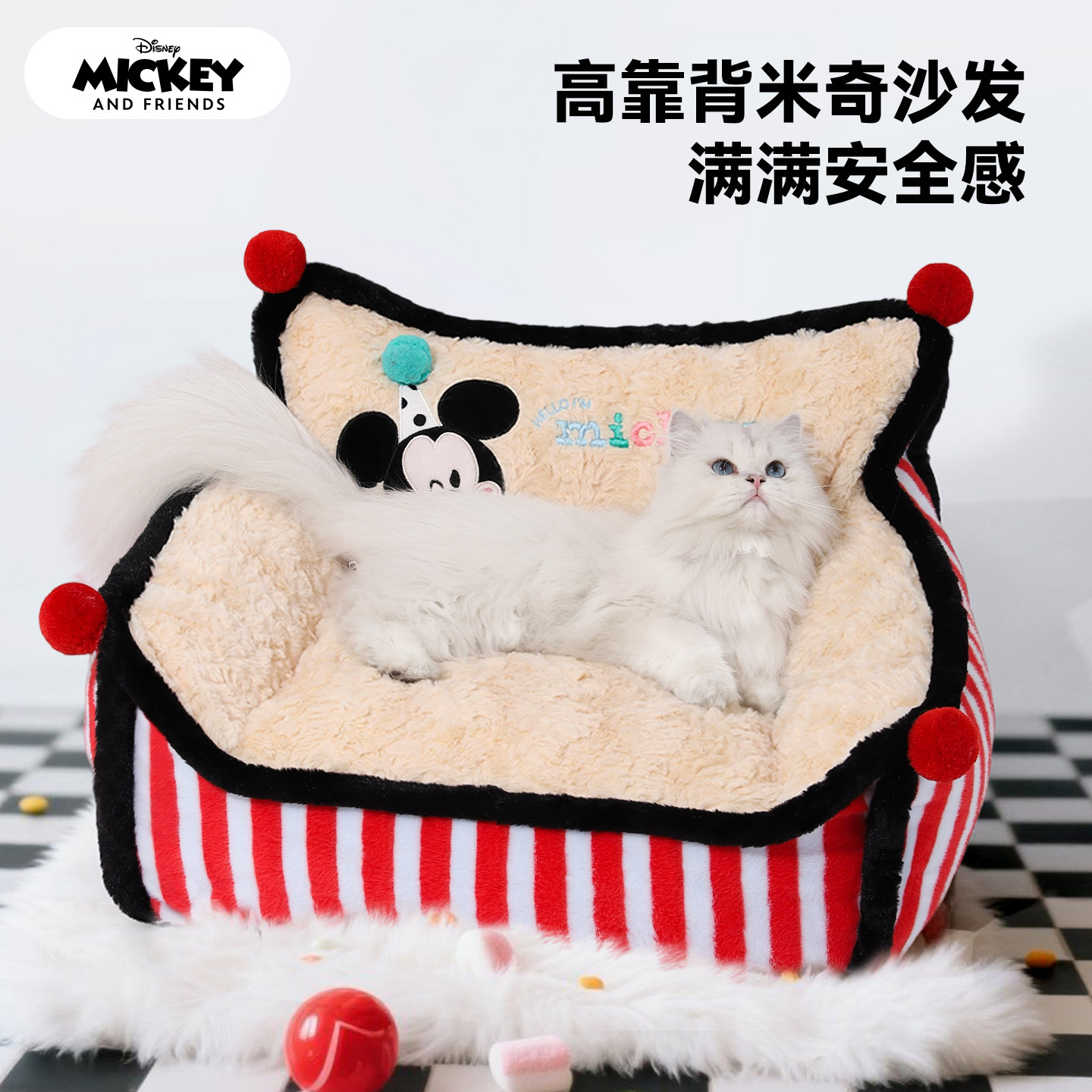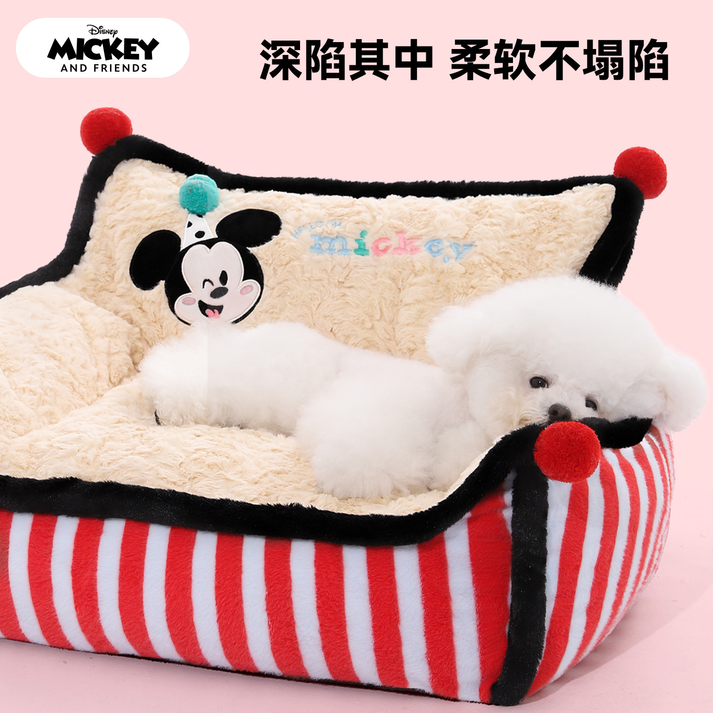 迪士尼米奇狗窝沙发冬季 通用 保暖条纹沙发窝宠物狗窝睡垫猫窝四季