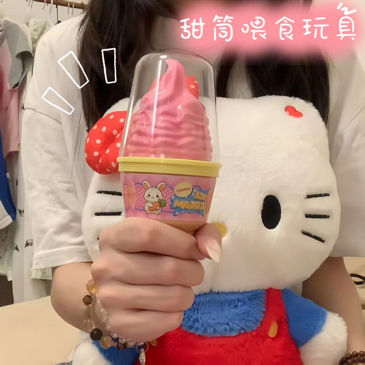 新款 冰淇淋喂食玩具仿真草莓甜筒布丁迷你食玩女孩儿童过家家玩具