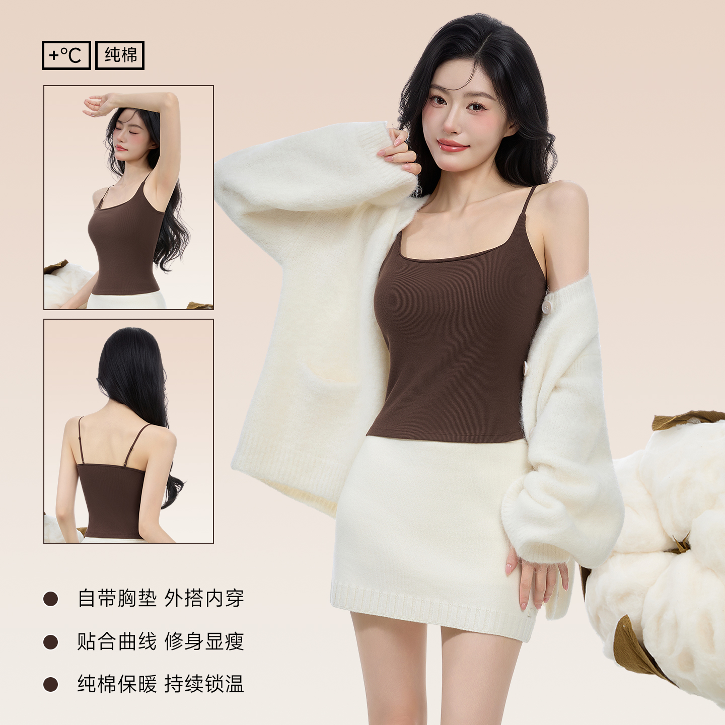 猫人吊带背心女带胸垫打底2025新款 可外穿内搭无痕美背上衣 秋冬季