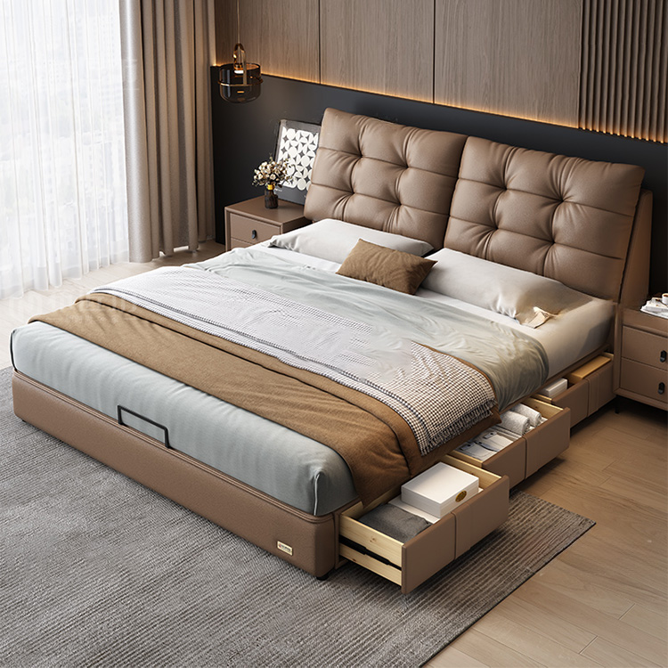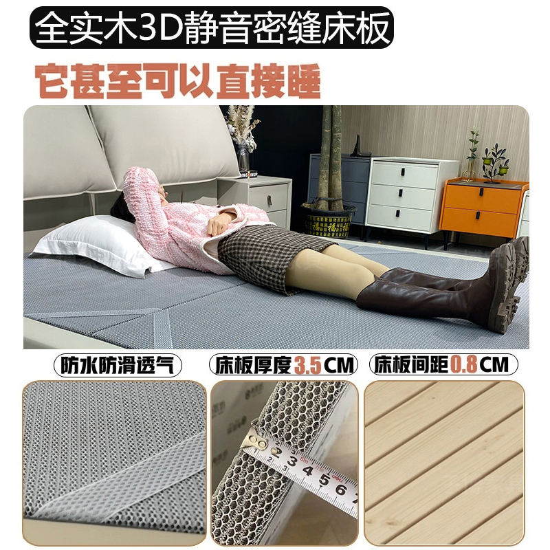 子博泡芙软包真皮床意式 轻奢极简齐边羽绒主卧双人大床悬浮床婚床