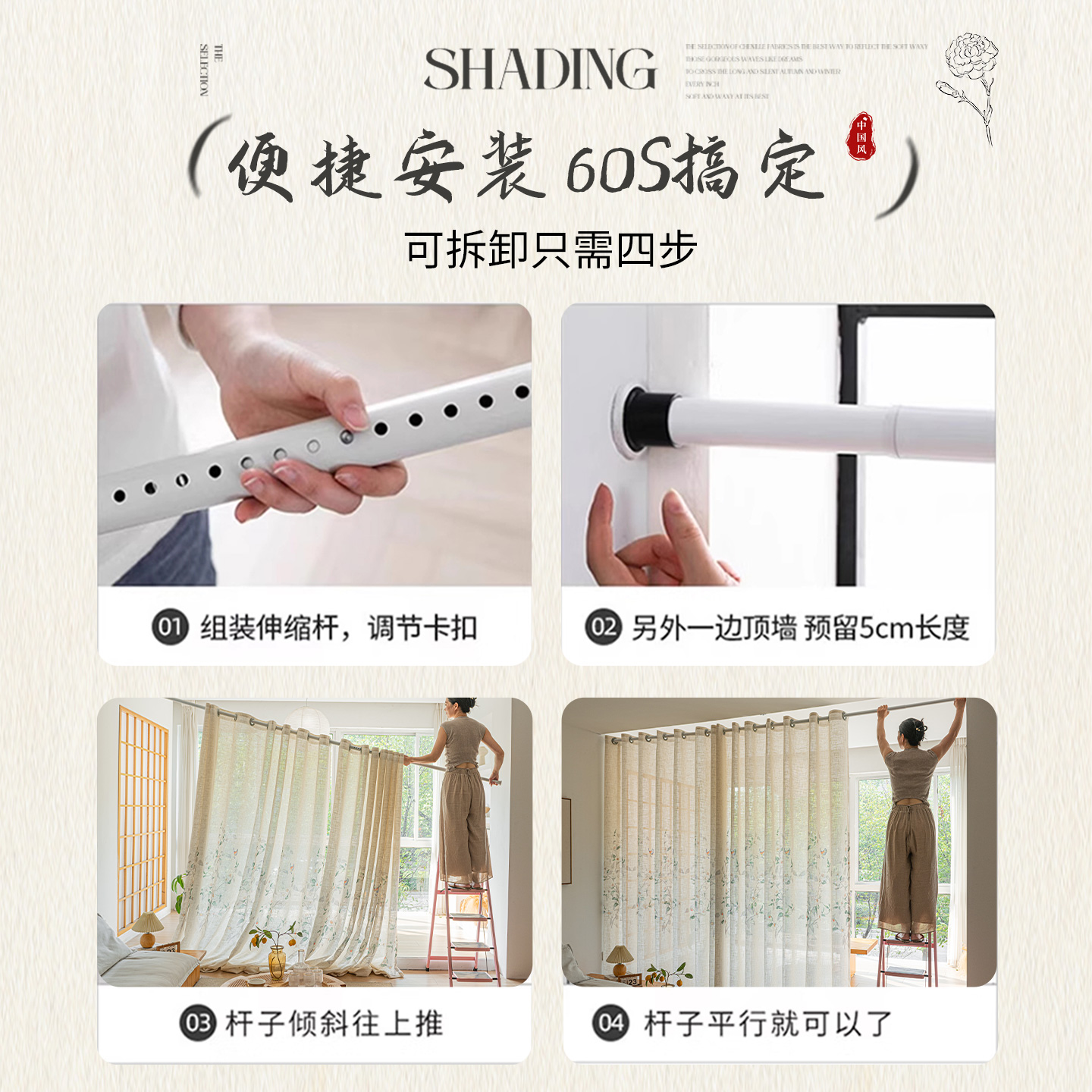 新中式 客厅阳台隔断帘透光不透人亚麻纱布 窗帘纱帘免打孔2025新款