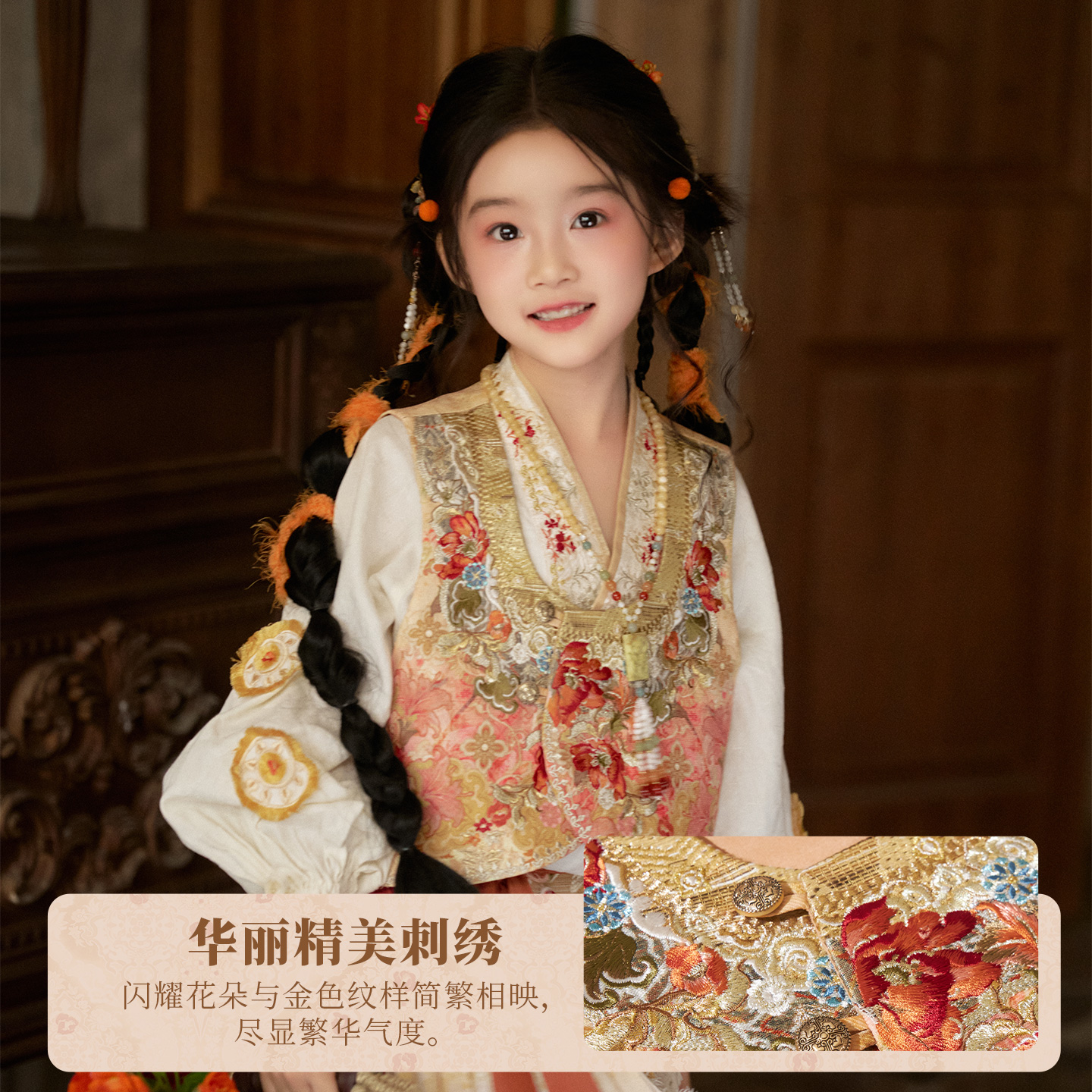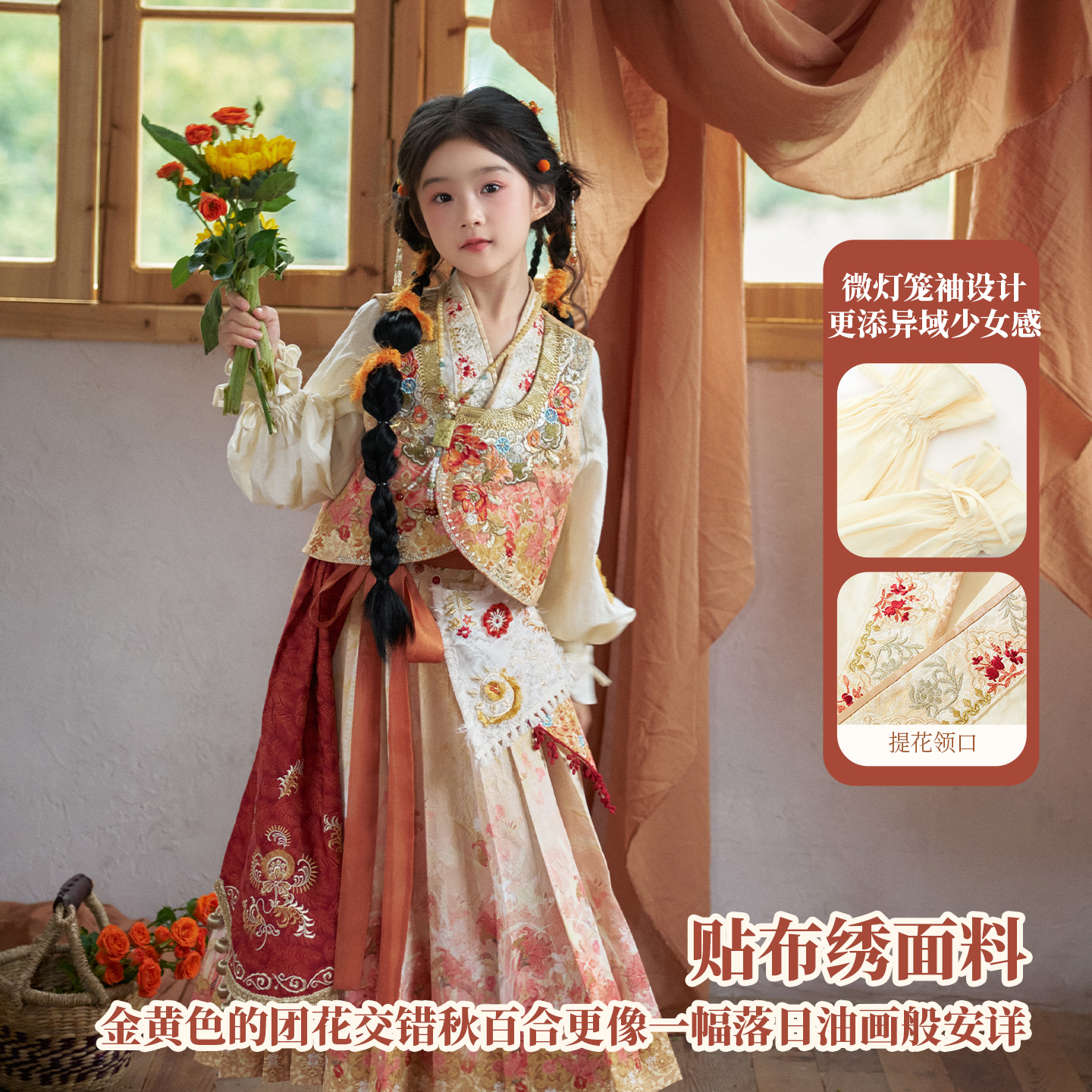 新款 十三余童装 秋季 国风汉服女童刺绣外套半裙套装 漫野知秋