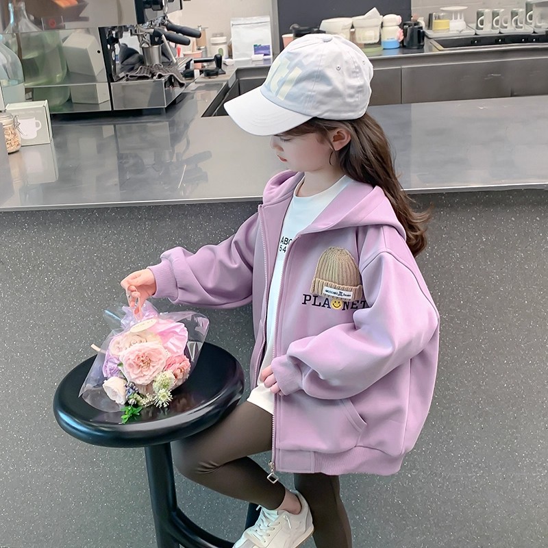 小女孩秋季 女童外套春秋款 儿童运动秋装 洋气童装 连帽上衣 2025新款
