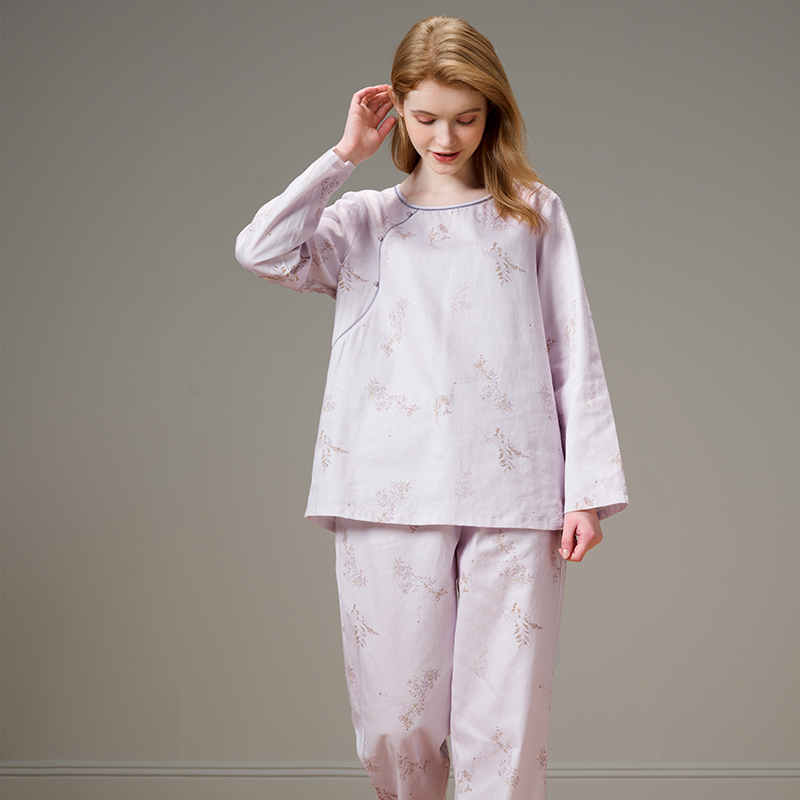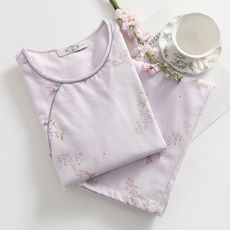 中国风甜美全棉时尚 美标新款 新中式 女秋冬季 家居服春 纯棉睡衣套装
