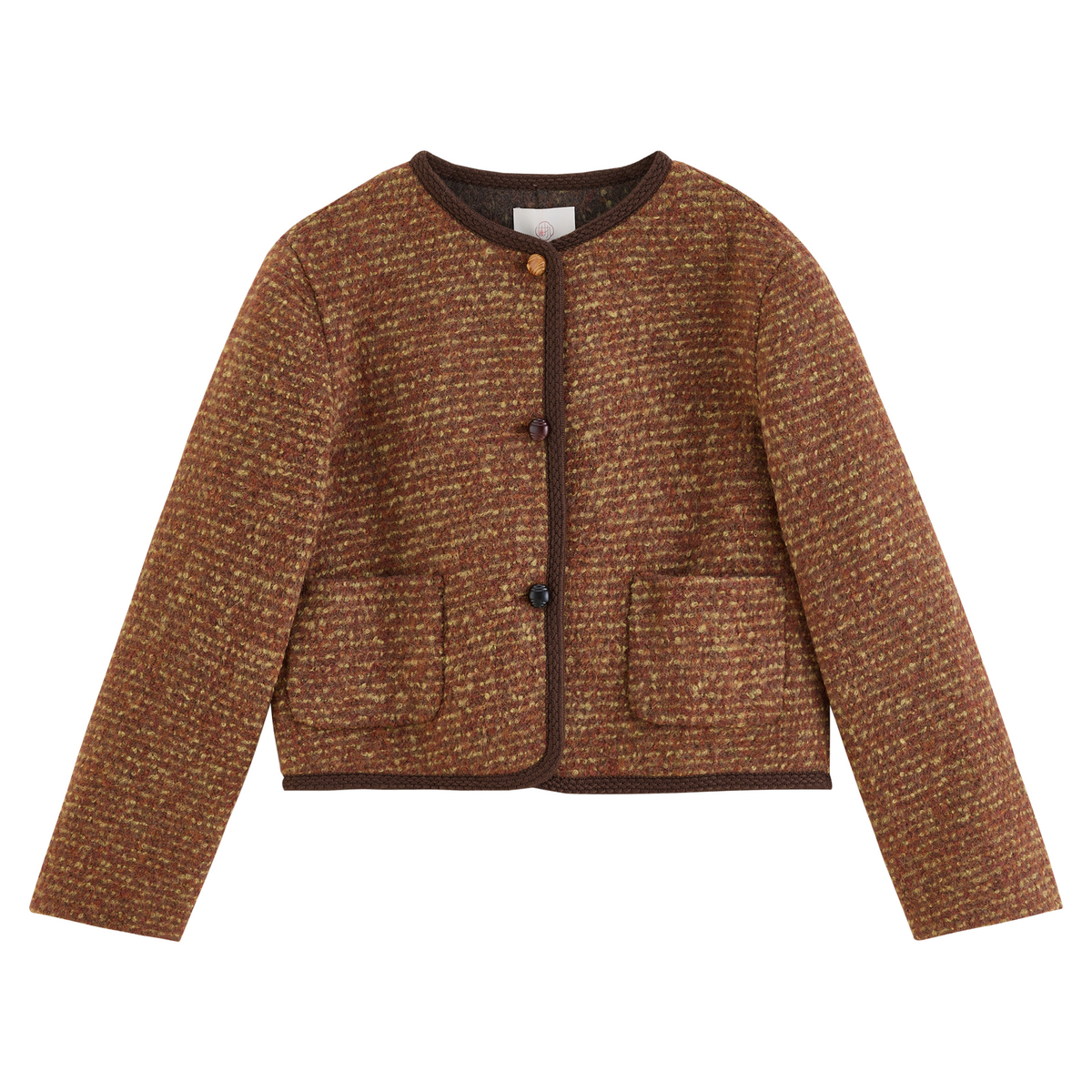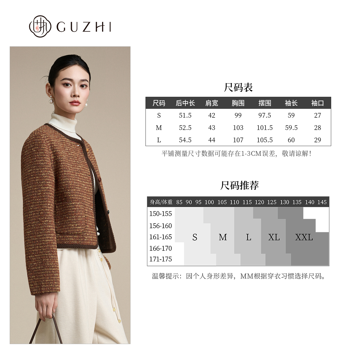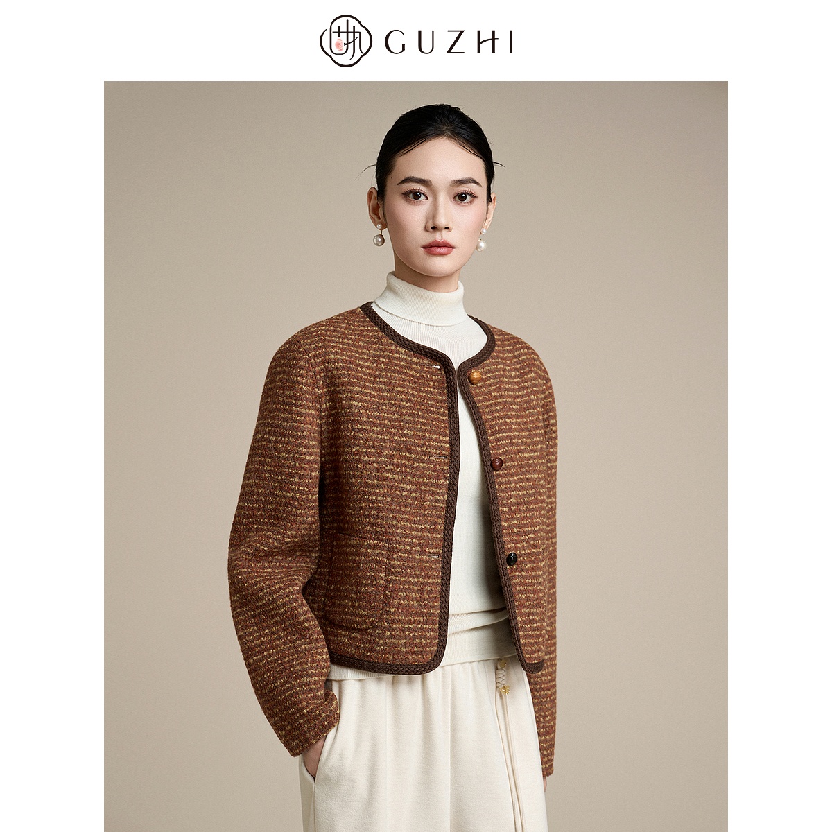 固执2025秋冬新款 复古气质小香风条纹圆领气质双面毛呢短外套 法式