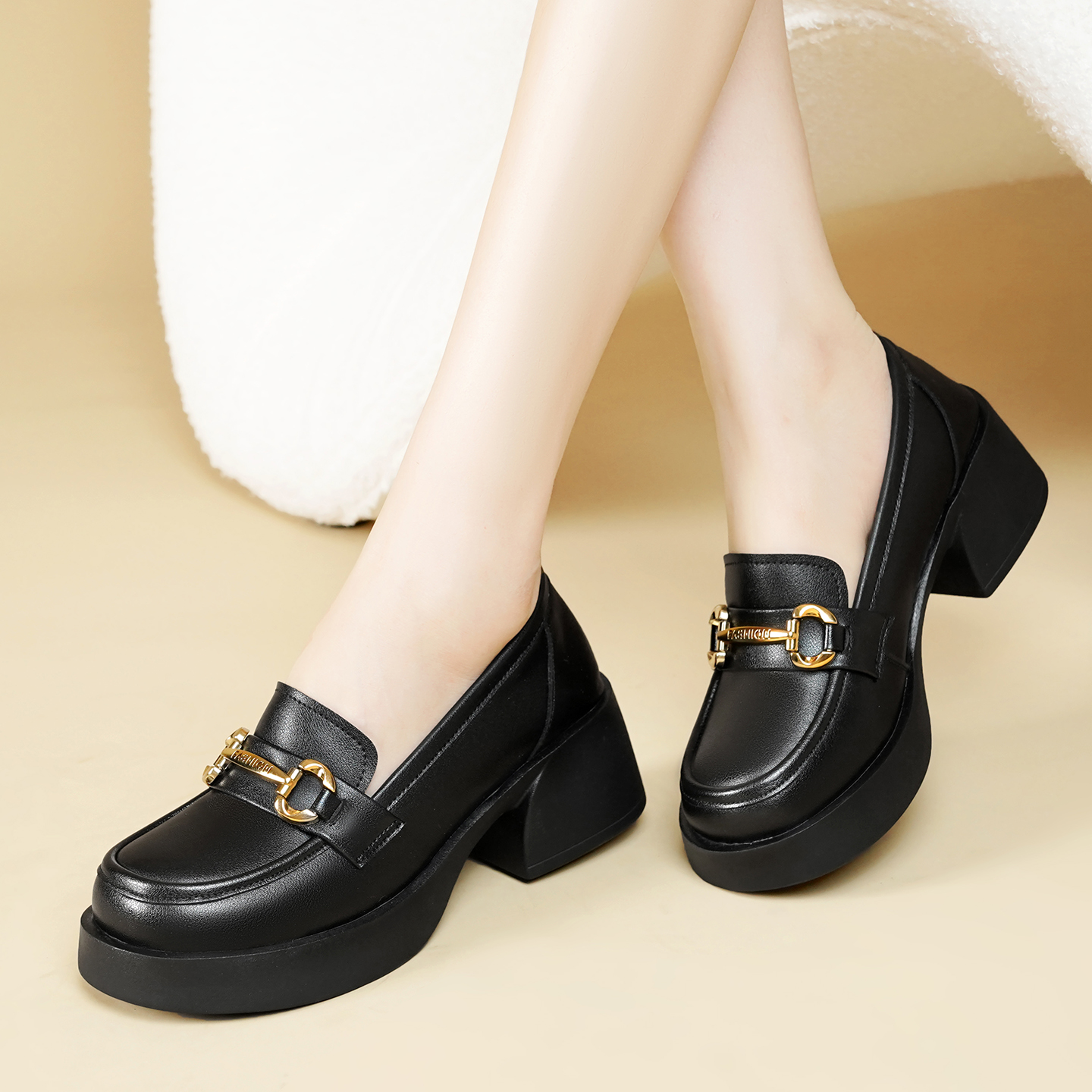 仙女风瓢鞋 秋季 浅口百搭中跟奶奶鞋 大码 真皮单鞋 女鞋 粗跟2025新款