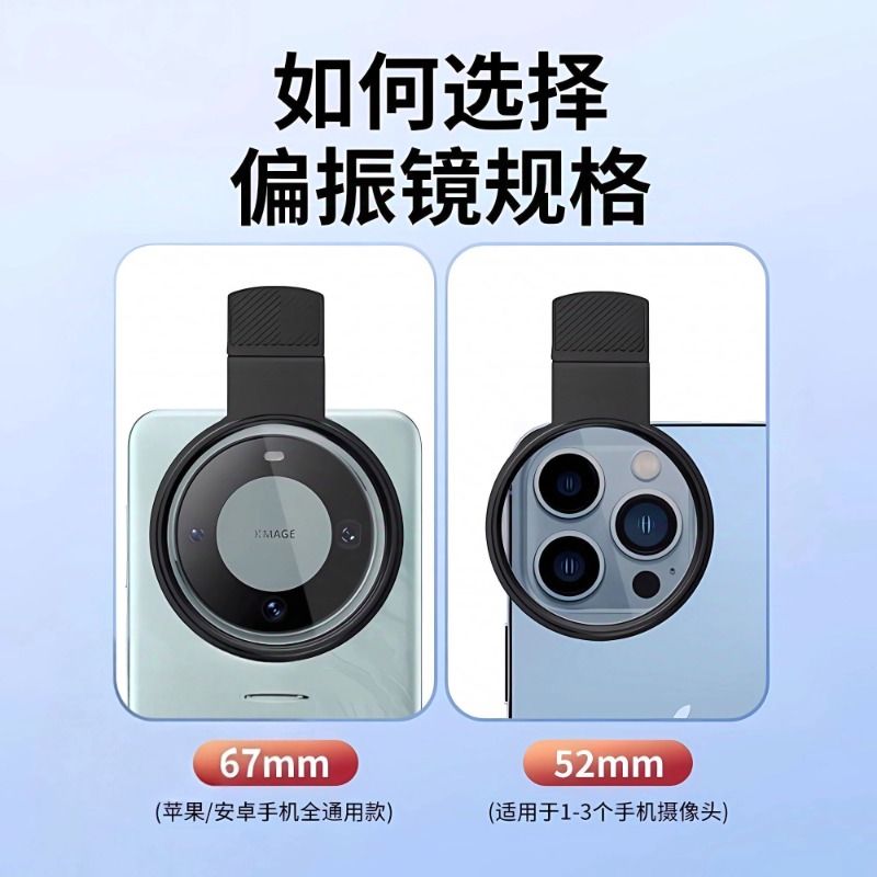 苹果偏振镜手机专用摄影滤镜拍照高清晰镜头适用华为iPhone偏振片镜专业cpl偏光镜52mm夹片拍摄出片辅助神器