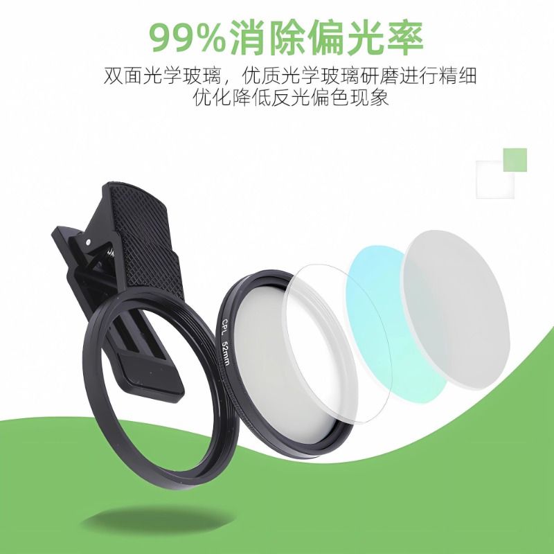 手机专用cpl偏振镜头52mm高清镀膜偏光过滤水面反光滤镜外接后摄影消除拍照神器苹果华为小米通用拍摄