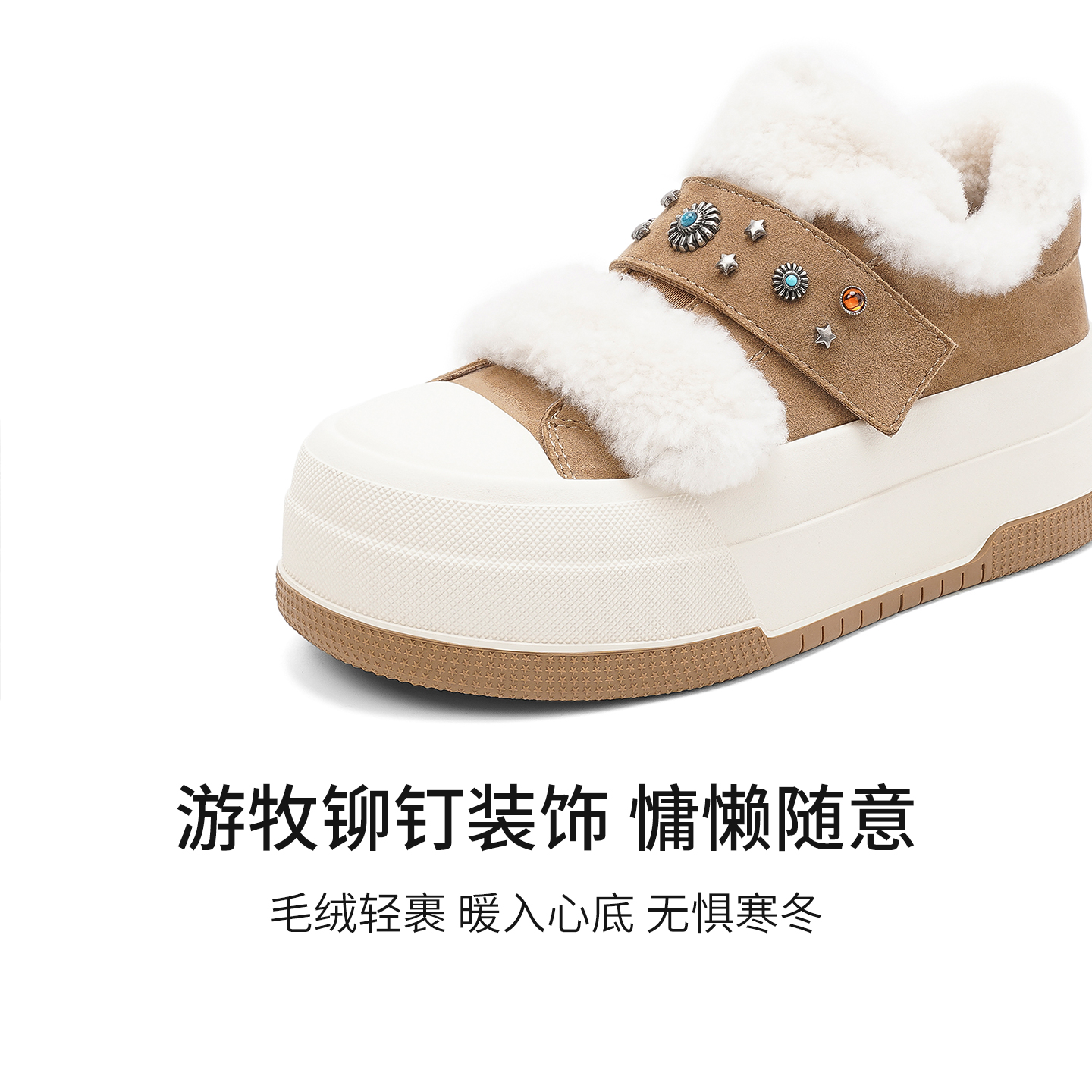 保暖加绒面包鞋 防水短筒增高棉鞋 新款 松糕厚底雪地靴女2025年冬季