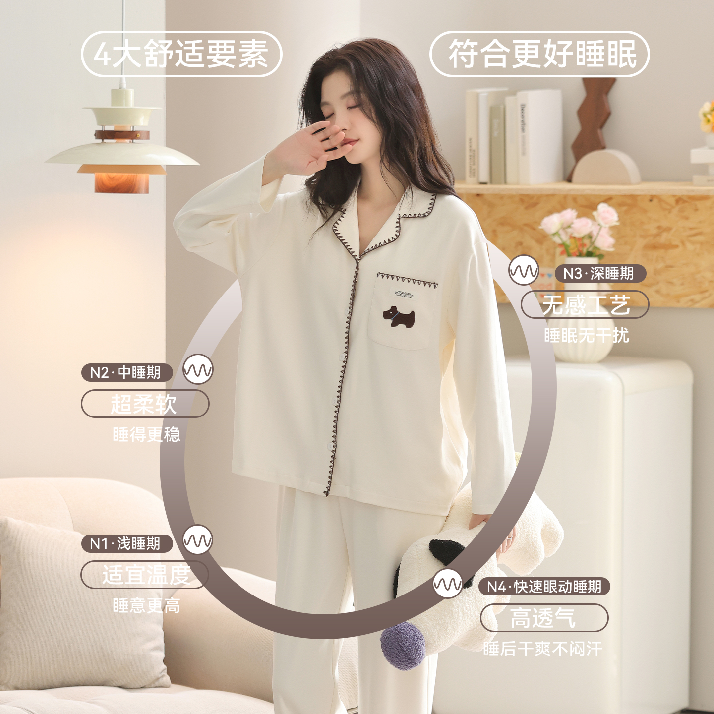 纯棉可爱小狗抗菌防螨家居服套装 红豆居家柔柔棉睡衣女春秋季 长袖