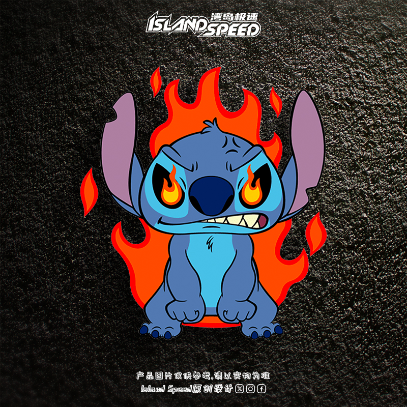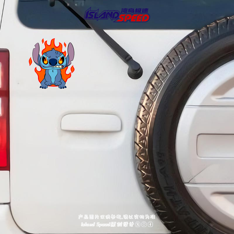 史迪仔生气汽车贴纸可爱火焰卡通创意个性 饰车门头盔电动车贴花 装
