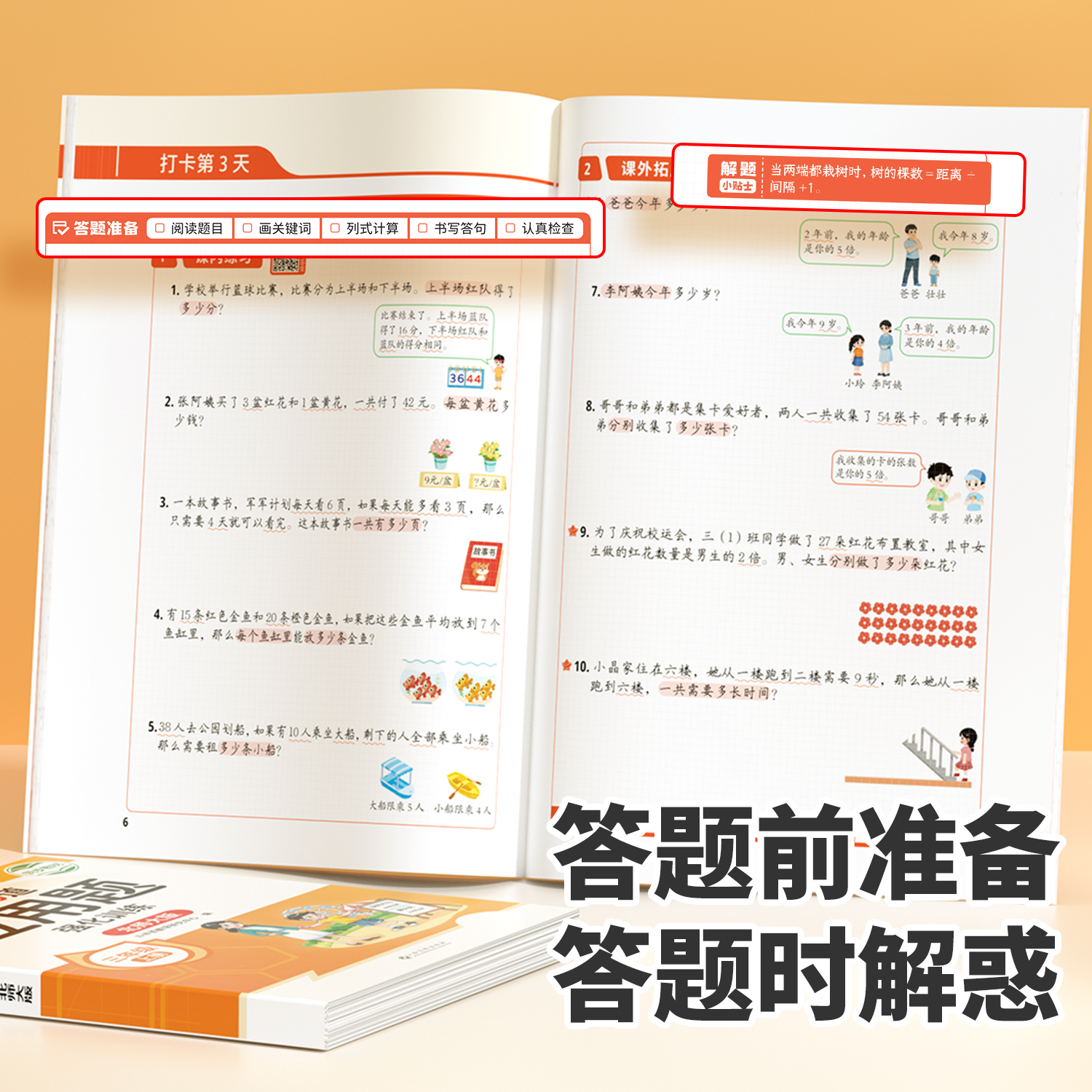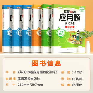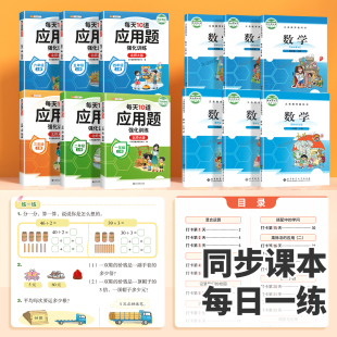 每天10道应用题强化训练北师版 计算解题技巧同步练习天天练 小学一年级二年级上册BS四五六年级小学生数学思维训练题口算题卡竖式