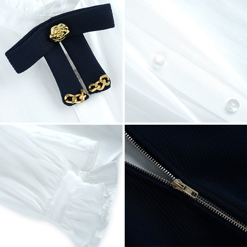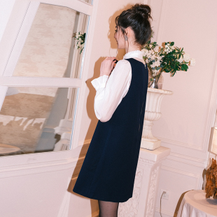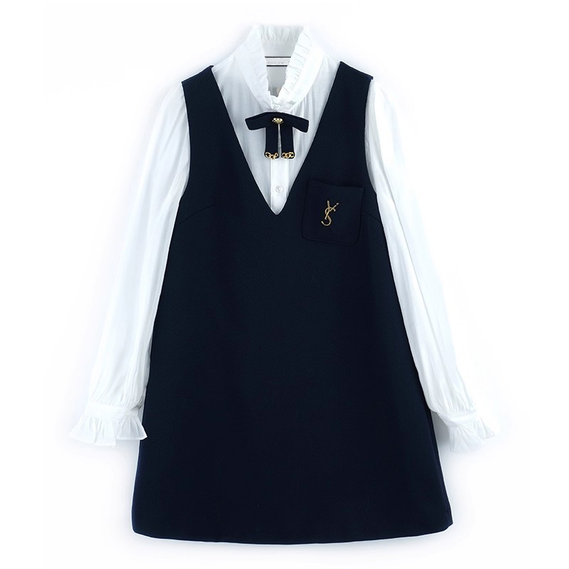 木耳花边立领蝴蝶领结衬衫 套装 V领背心裙两件套 时尚 爵莱菲大码