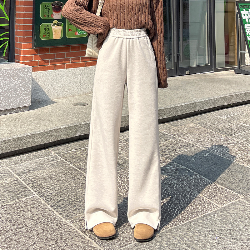 女2025新款 直筒糯米裤 秋冬款 窄版 加绒毛呢裤 NOW真维斯高腰阔腿裤