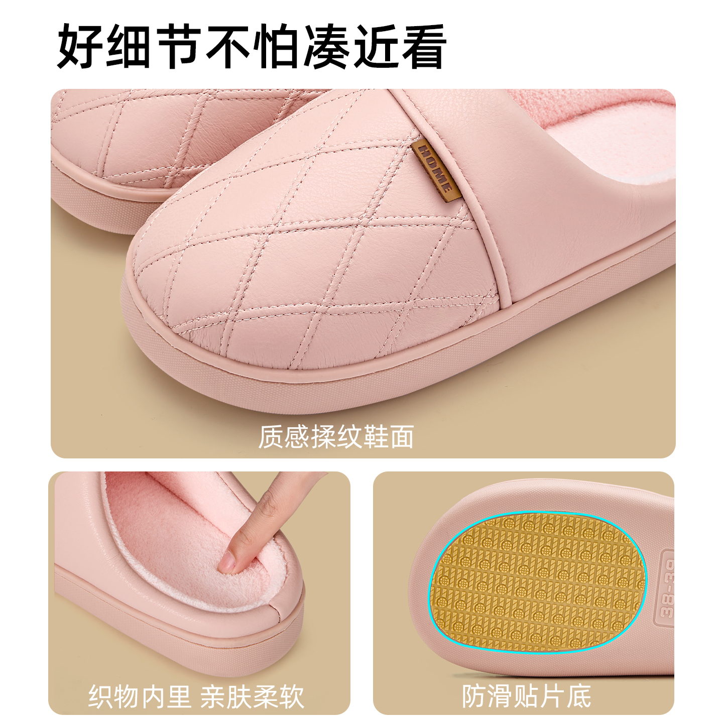 秋冬季 家居保暖舒适防水皮面棉鞋 男 女抗菌2025新款 老人防滑棉拖鞋