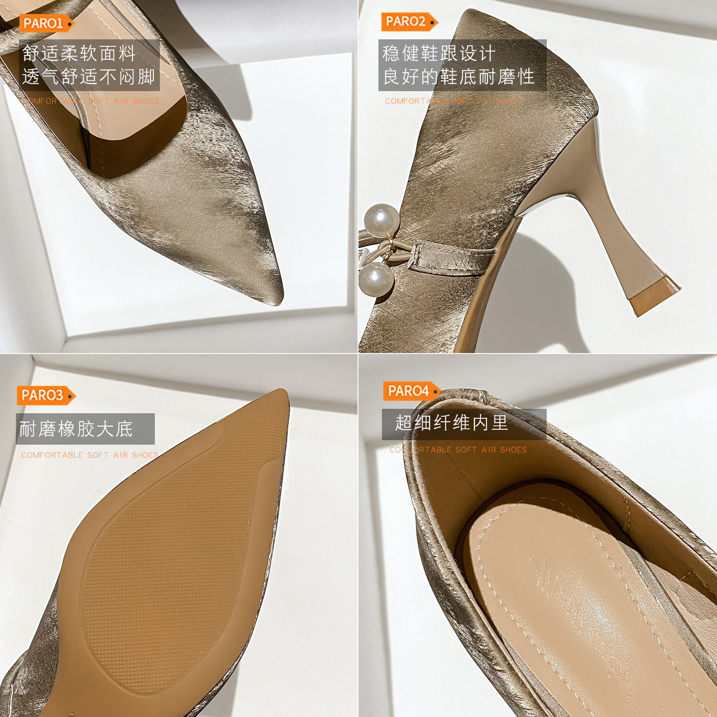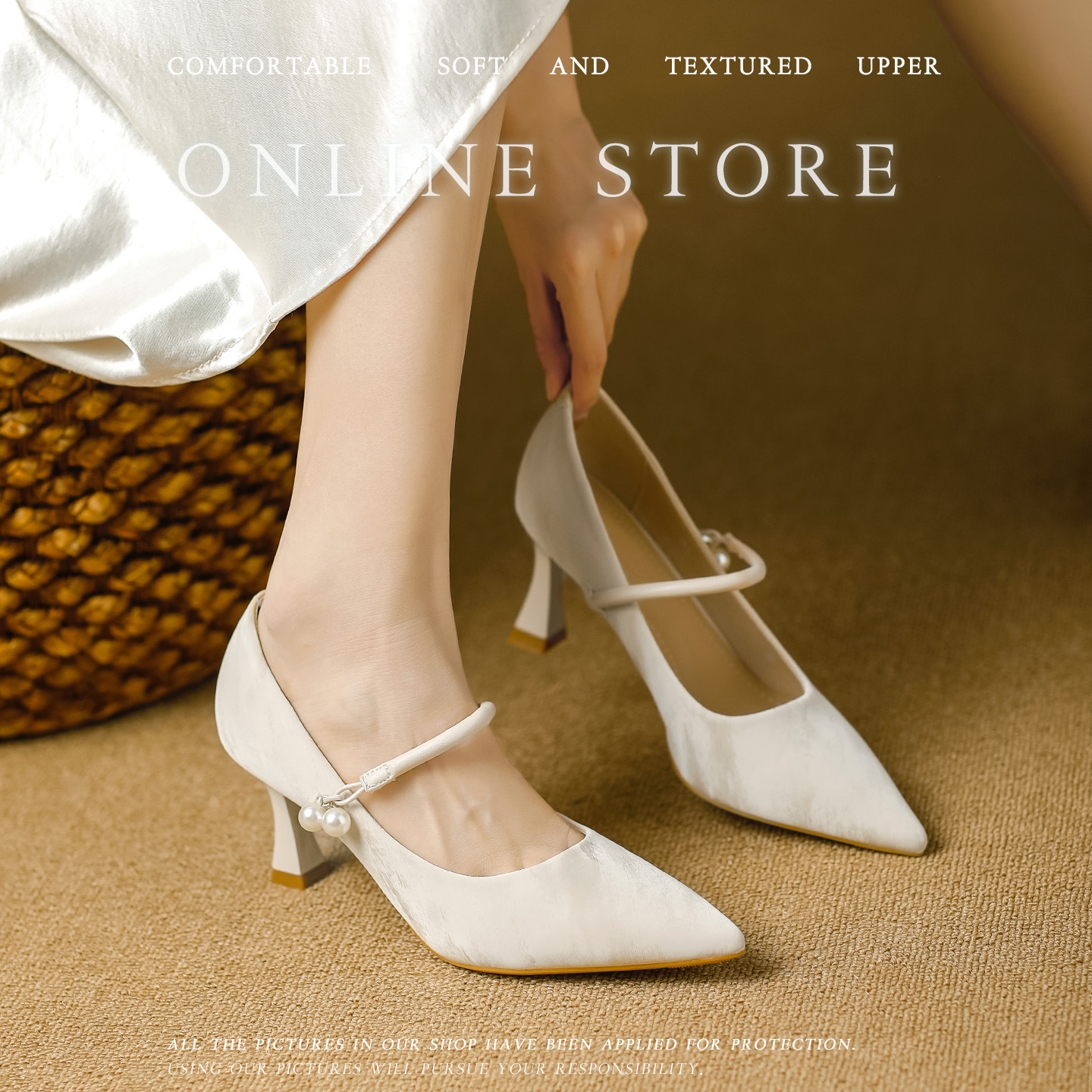 小皮鞋 达芙妮玛丽珍女鞋 千金珍珠高跟鞋 绝美浅口单鞋 2025秋冬新款