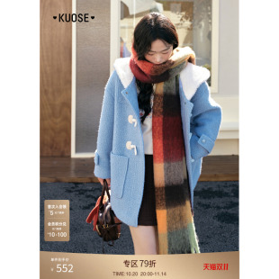 RUISHI芮时 重磅驼绒桑蚕丝羊毛慵懒两穿领毛呢大衣女秋冬外套女