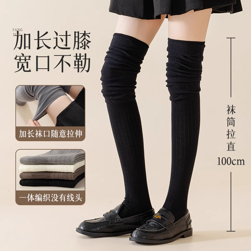 长筒靴袜子女搭配靴子小腿堆堆过膝袜春秋内搭白色大腿长筒袜羊毛