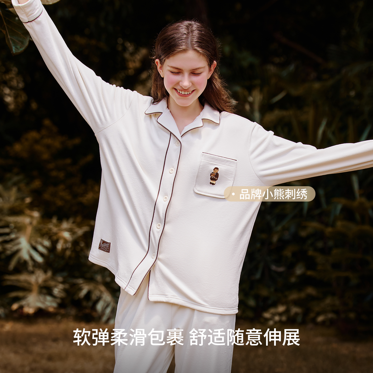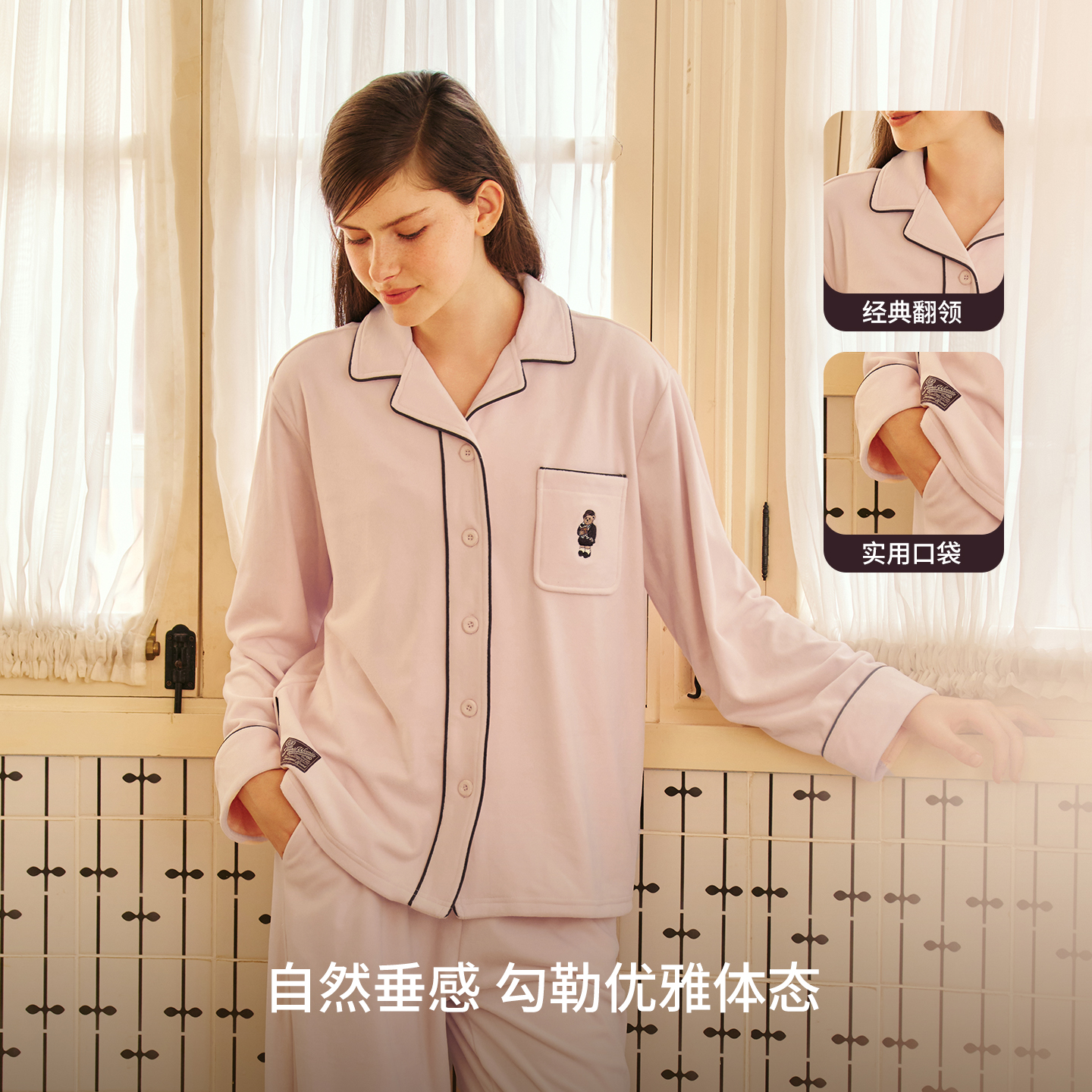 翻领情侣款 法式 舒适秋冬外穿睡衣 开襟家居服套装 ubras云棉长袖