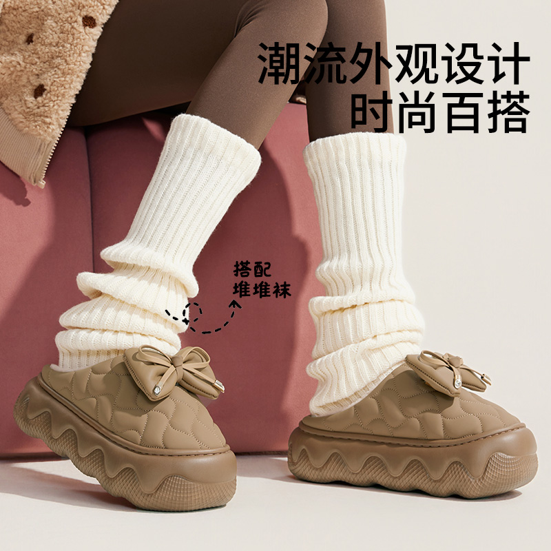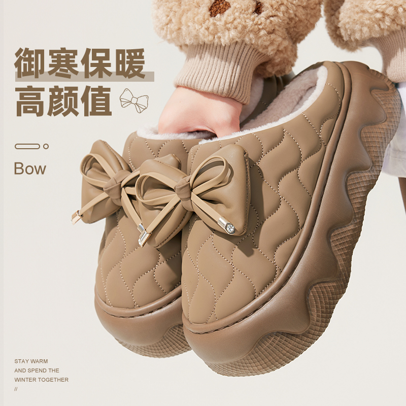 儿童蝴蝶结棉拖鞋 室内居家防滑防水毛绒保暖亲子棉拖女孩 女童冬季