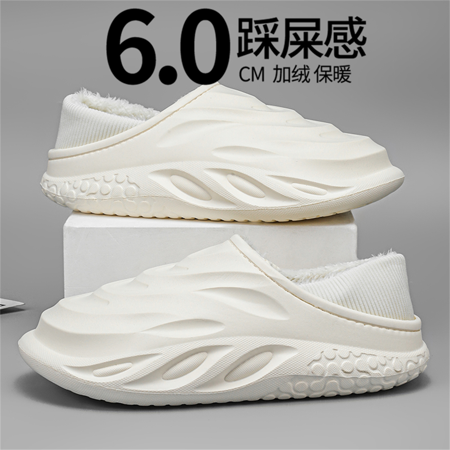 家用室内防水包跟棉鞋 2025新款 厚底情侣外穿加绒棉拖 男冬季 棉拖鞋