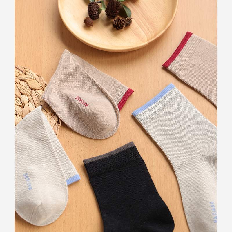 棉伙棉伴海藻袜舒适抗菌防臭男女商务运动纯色裸感中筒袜