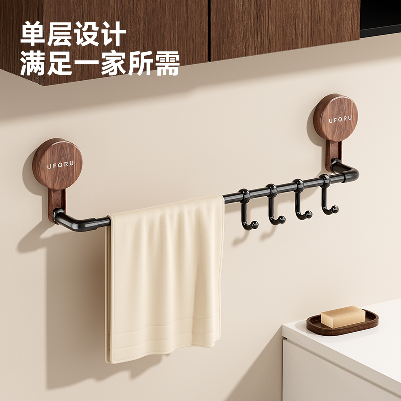 吸盘毛巾架卫生间免打孔置物架浴室浴巾架壁挂毛巾收纳挂架家用