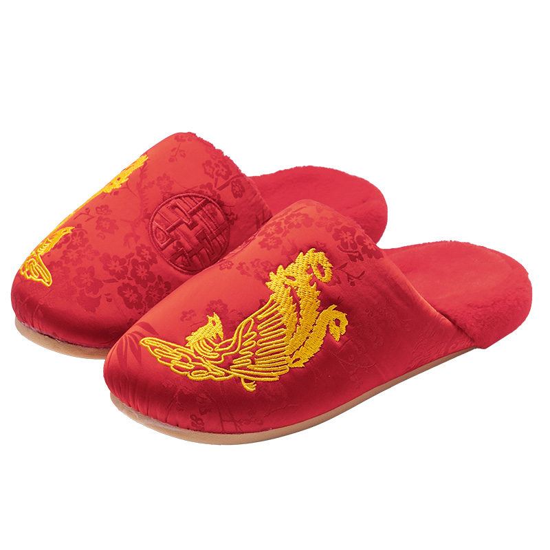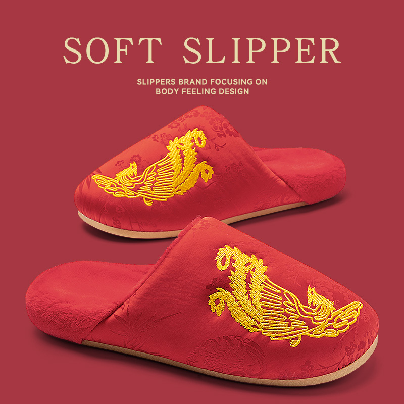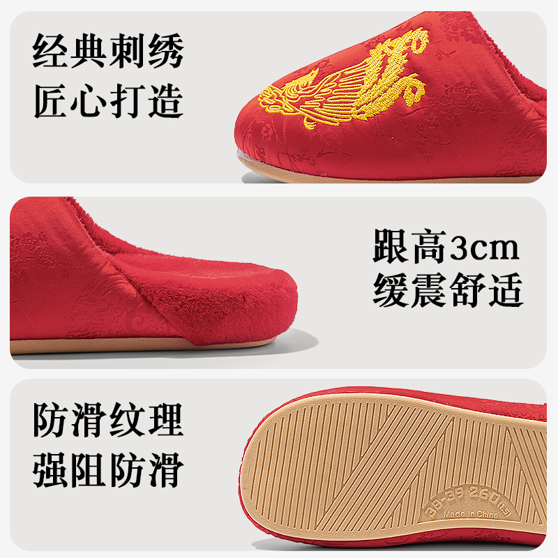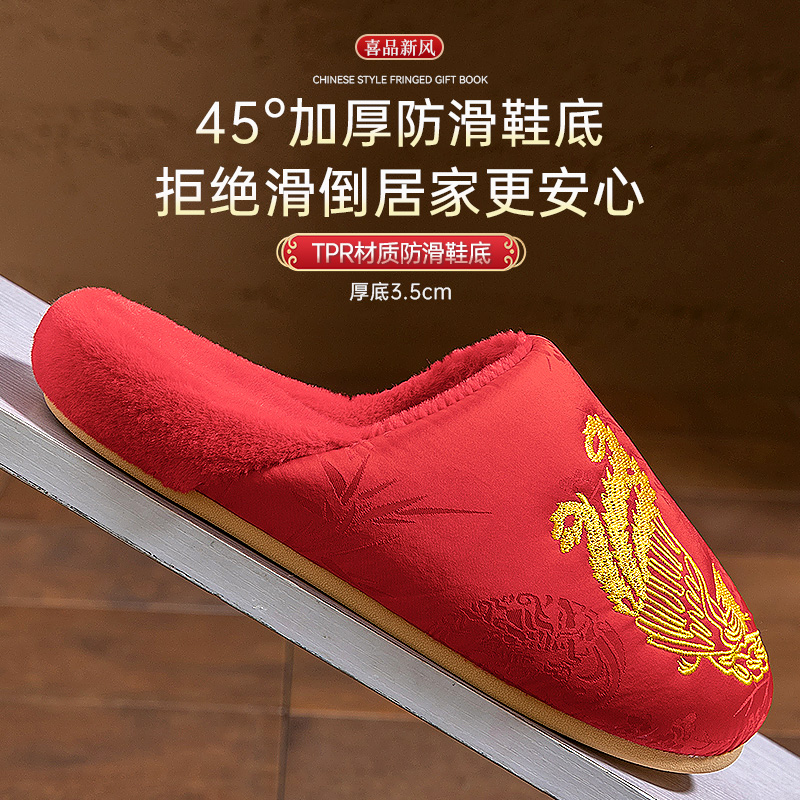 喜庆女方陪嫁轻奢厚底婚鞋 2025新款 男女 结婚一对秋冬季 红色棉拖鞋