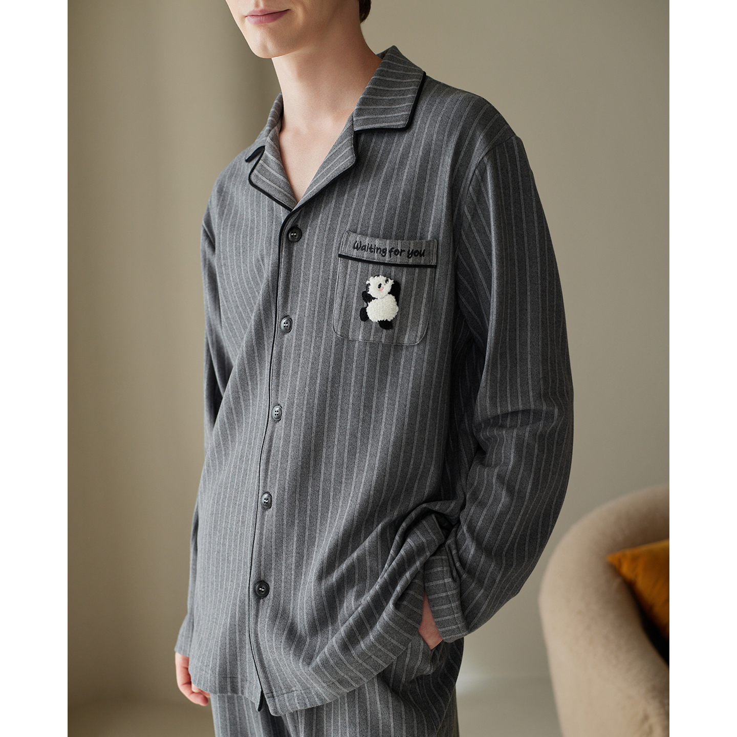 有内情侣睡衣女春秋纯棉抗菌防螨2025新款 熊猫A类棉男家居服套装