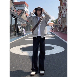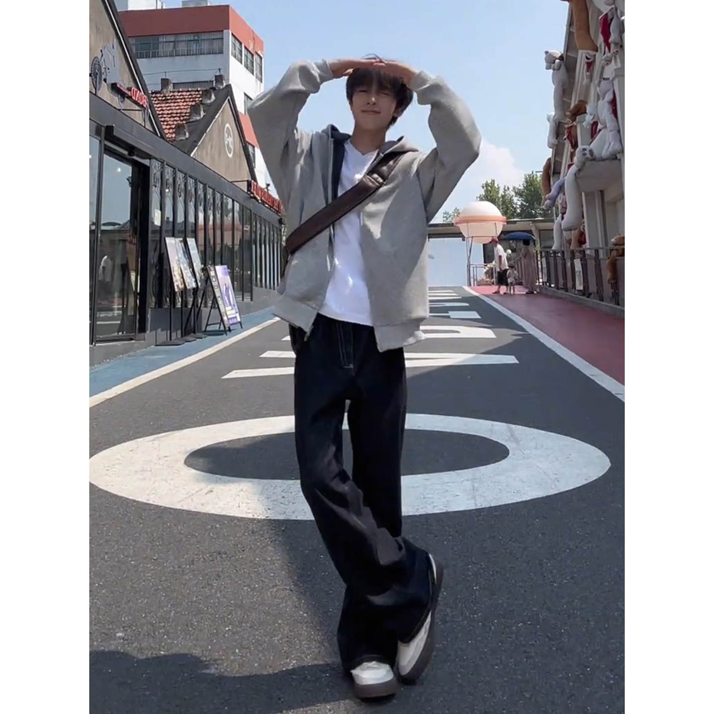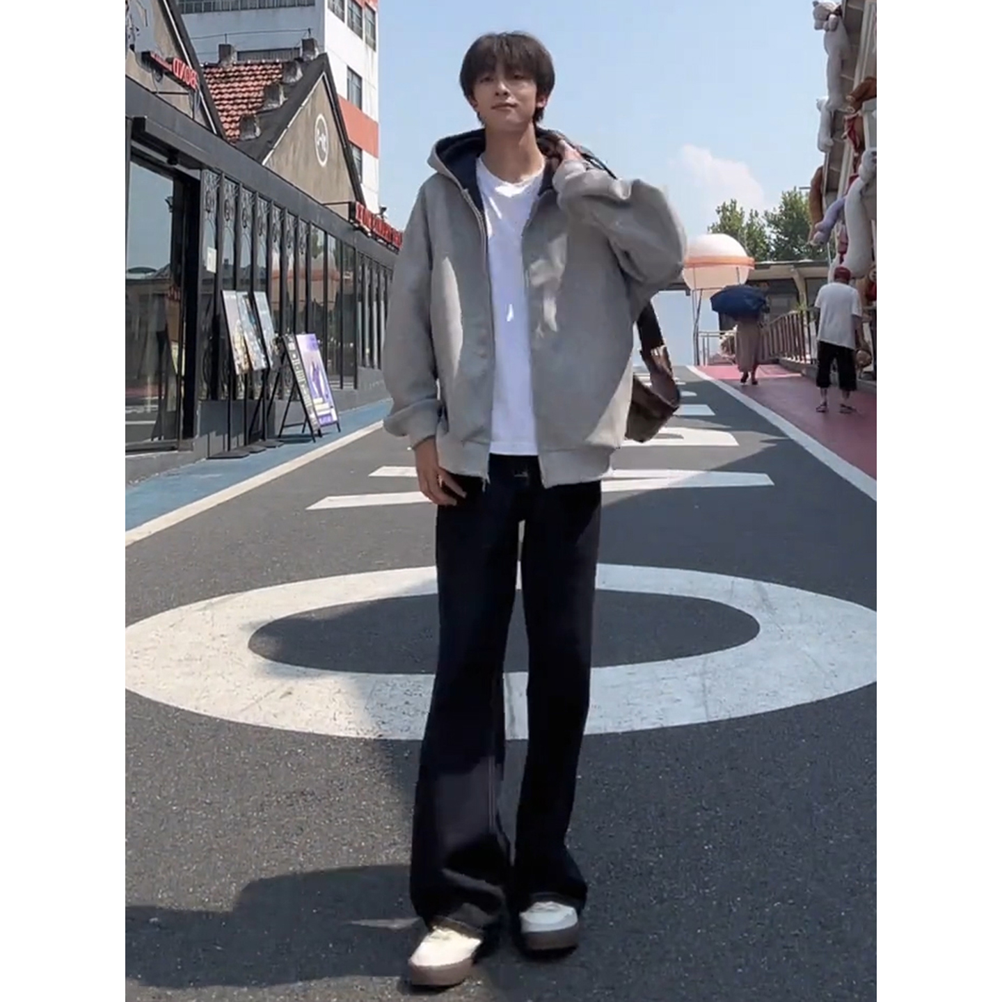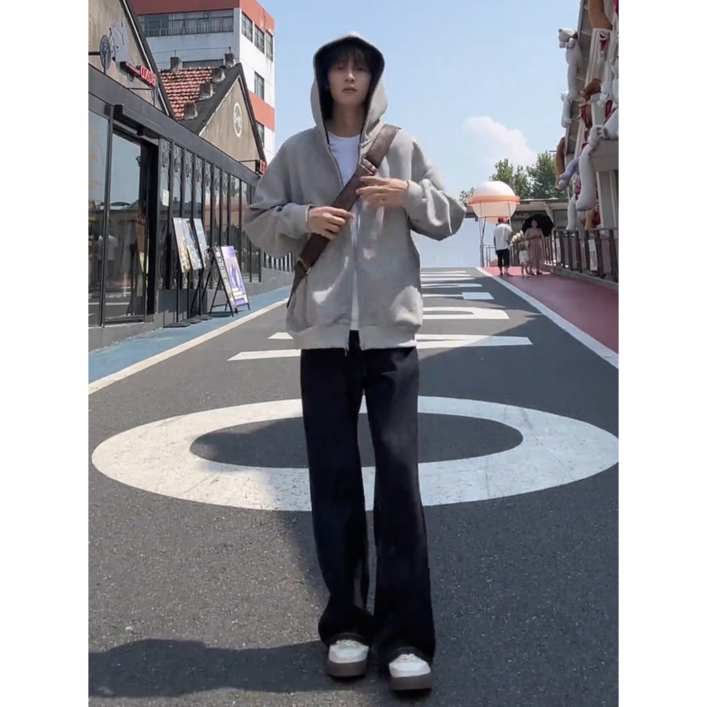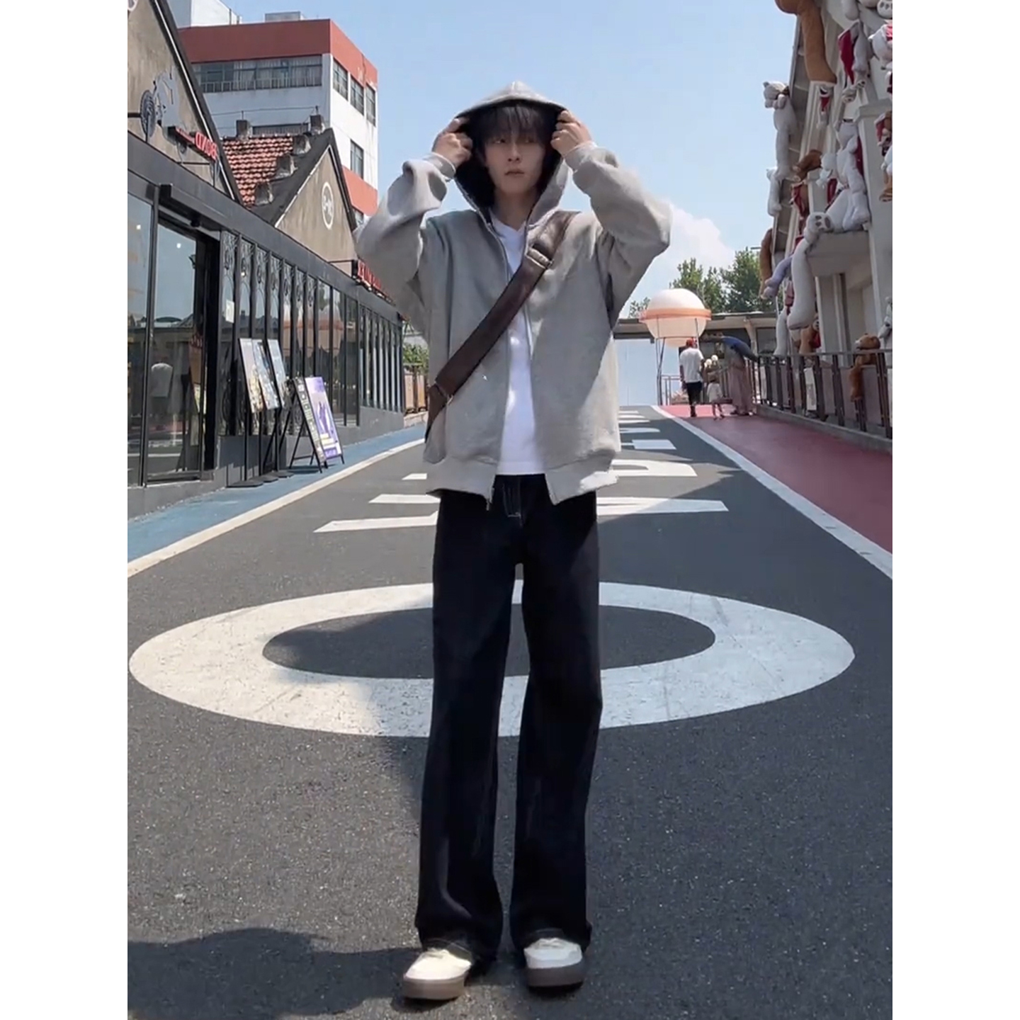 高街重磅硬挺廓形外套 潮牌cleanfit穿搭美式 双拉链开衫 卫衣男秋季