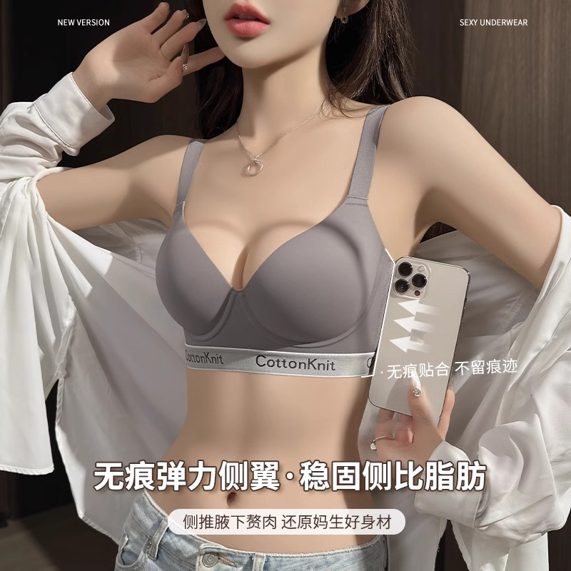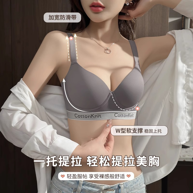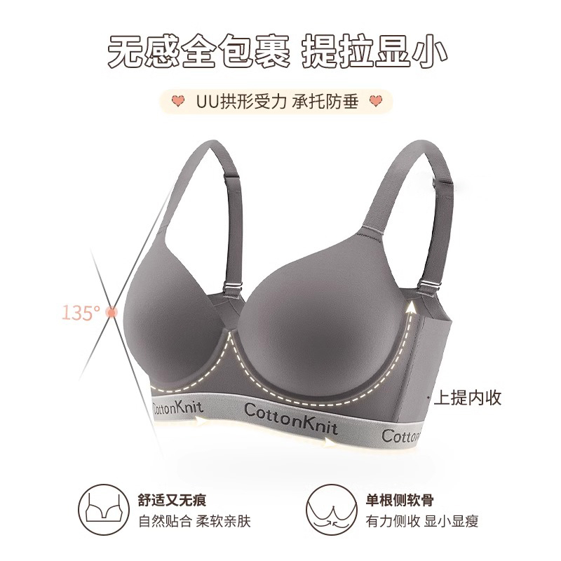 草本初色粉底液内衣女细肩带隐形小胸聚拢无痕透气夏薄款 凉感文胸