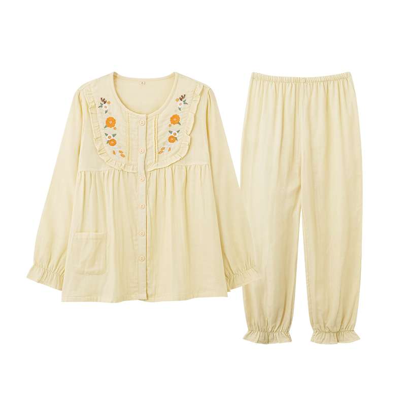长袖 简约舒适家居服套装 长裤 夏季 可外穿 2025新款 纯棉睡衣女春秋季