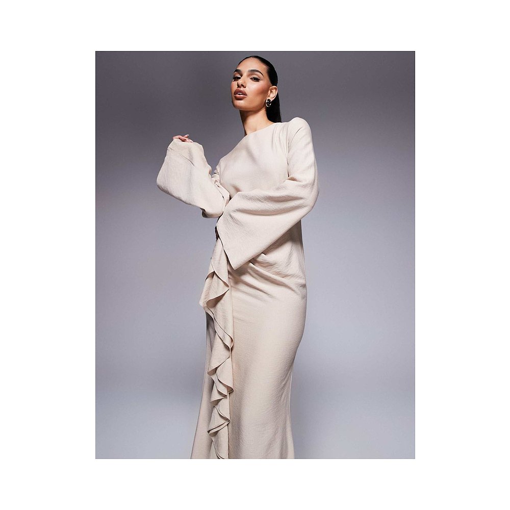 desire不对称斜肩V领褶皱连衣裙2025冬季 orange 新款 虞美人