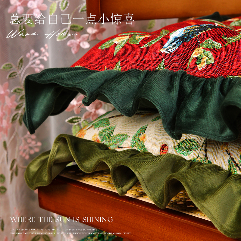 复古风椅垫饼干垫双面双用飘窗坐垫学生座椅屁垫 美式 九孔定位