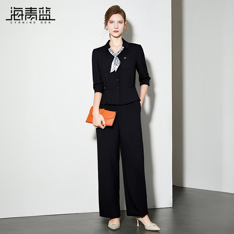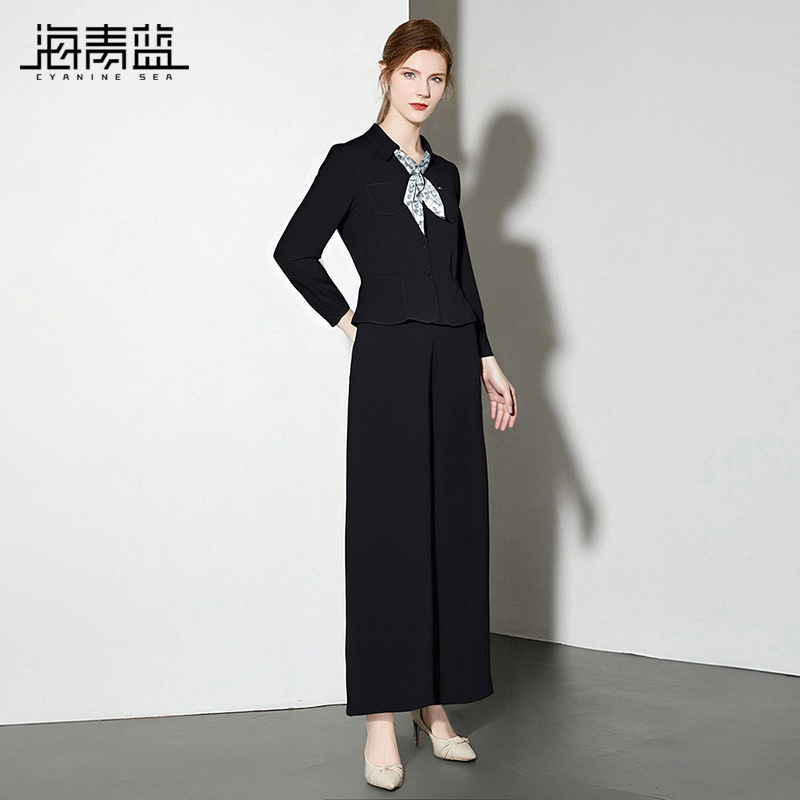 纯色高级设计感小众休闲裤 女2025年新款 两件套 秋冬套装 海青蓝