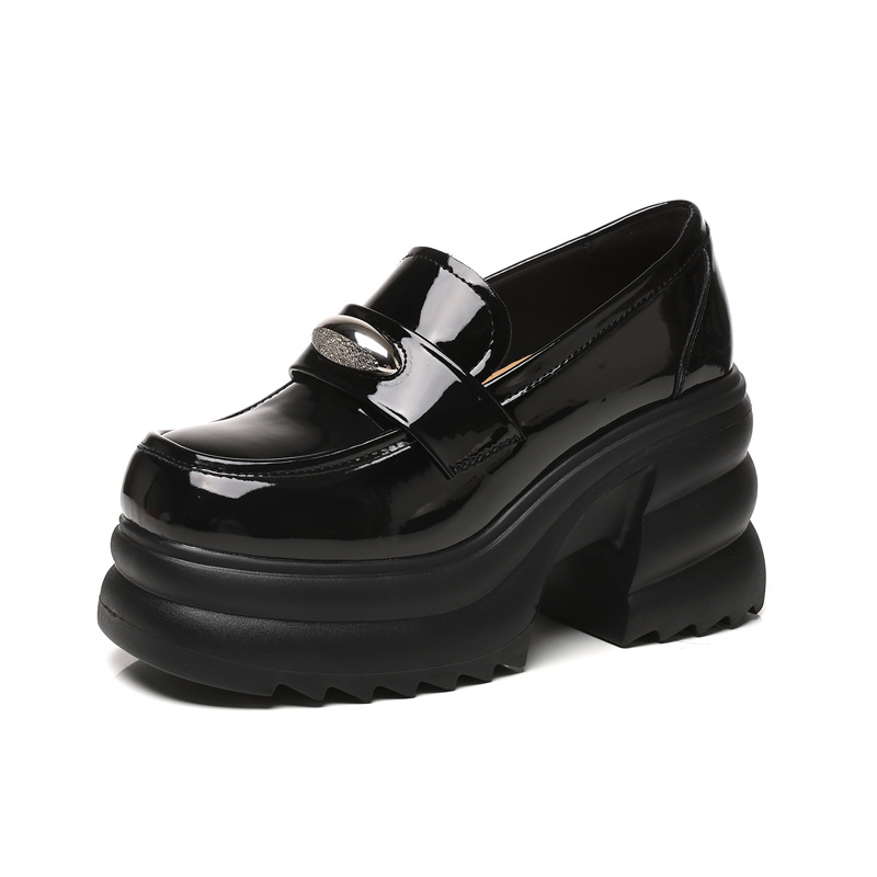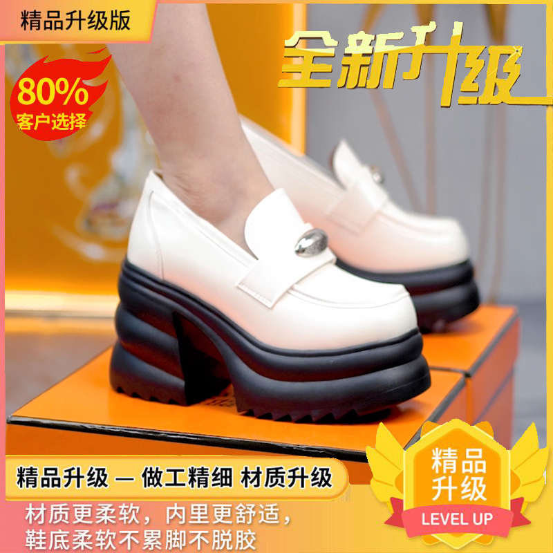 轻便百搭增高休闲小皮鞋 款 女2025秋季 9cm小个子一脚蹬厚底乐福鞋