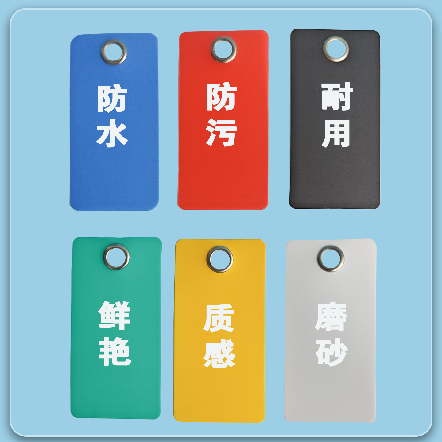 吊牌塑料PVC磨砂防水防晒防油防滑耐磨抗油污多色可选彩色50丝塑料卡产品包装 挂签10MM鸡眼铁扣抗拉印刷定做