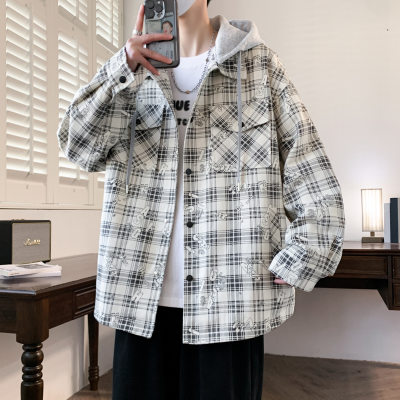 青少年春秋外套男2025新款 潮流宽松连帽夹克港风初中高中学生上衣