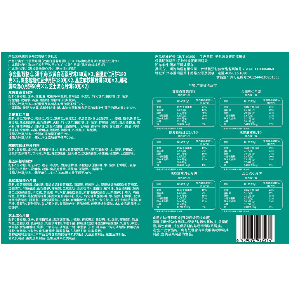 陶陶居陶然粤味1380g双黄莲蓉五仁流心广东特产月饼礼盒2025新款