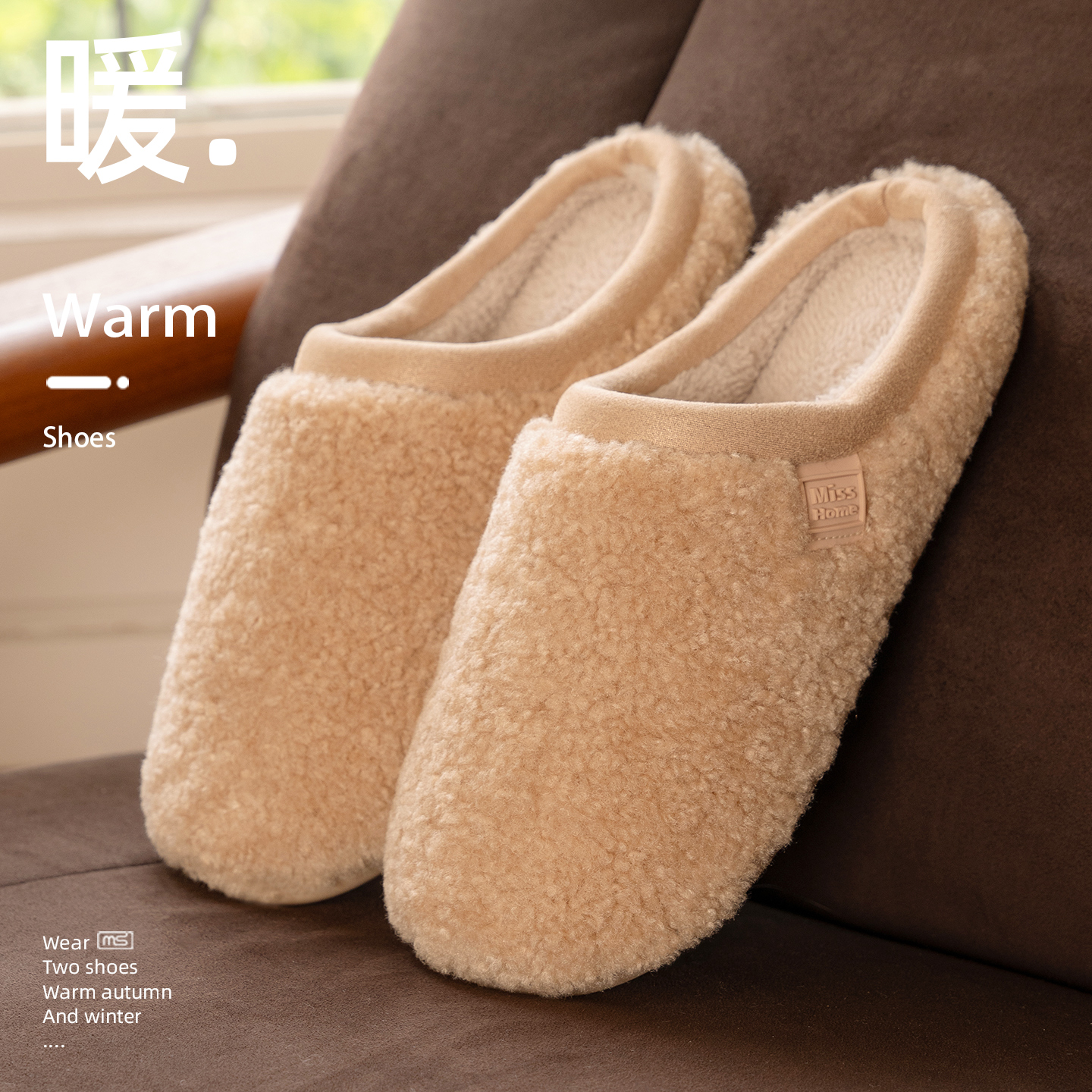 时尚 室内居家加绒保暖防滑包头棉拖鞋 情侣款 女秋冬季 毛毛拖鞋 新款