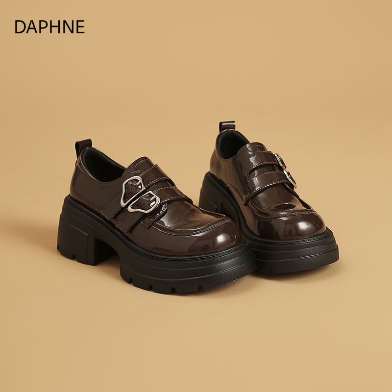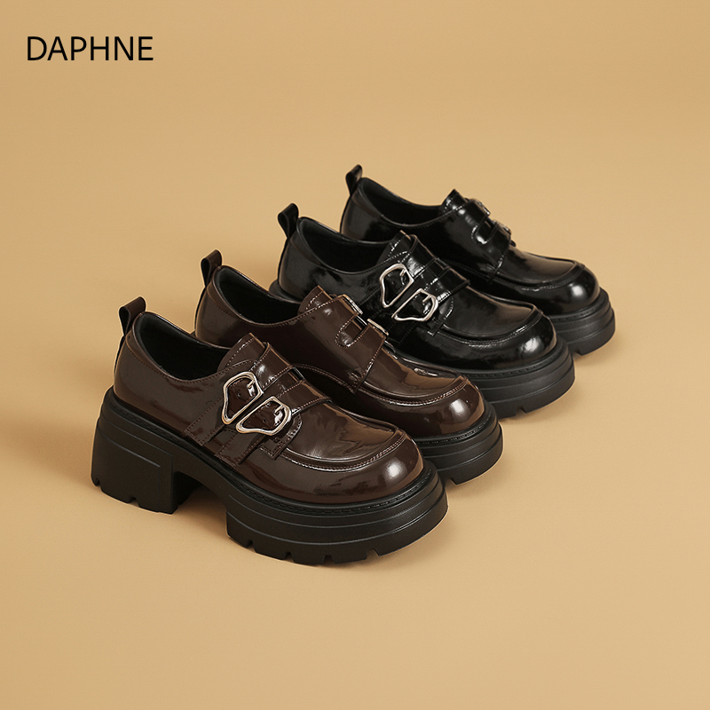 女款 英伦风黑色亮面单鞋 2025新款 厚底松糕小皮鞋 秋季 达芙妮乐福鞋