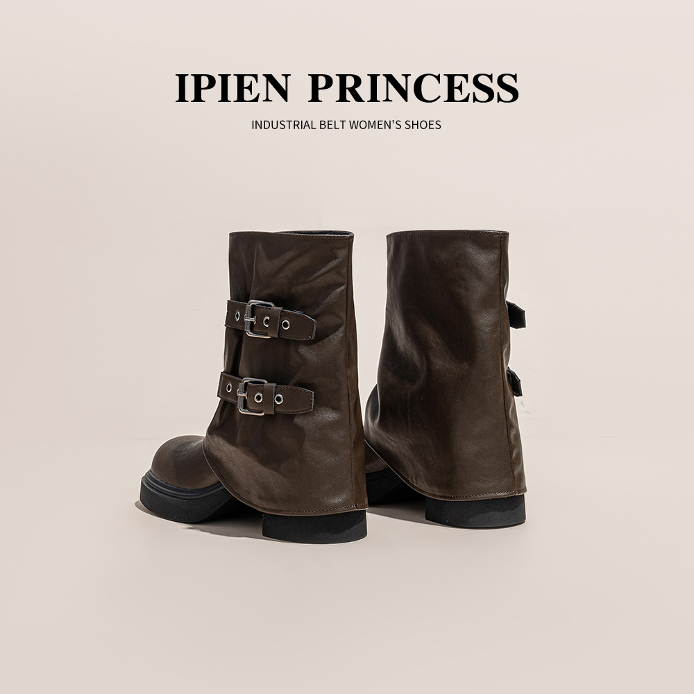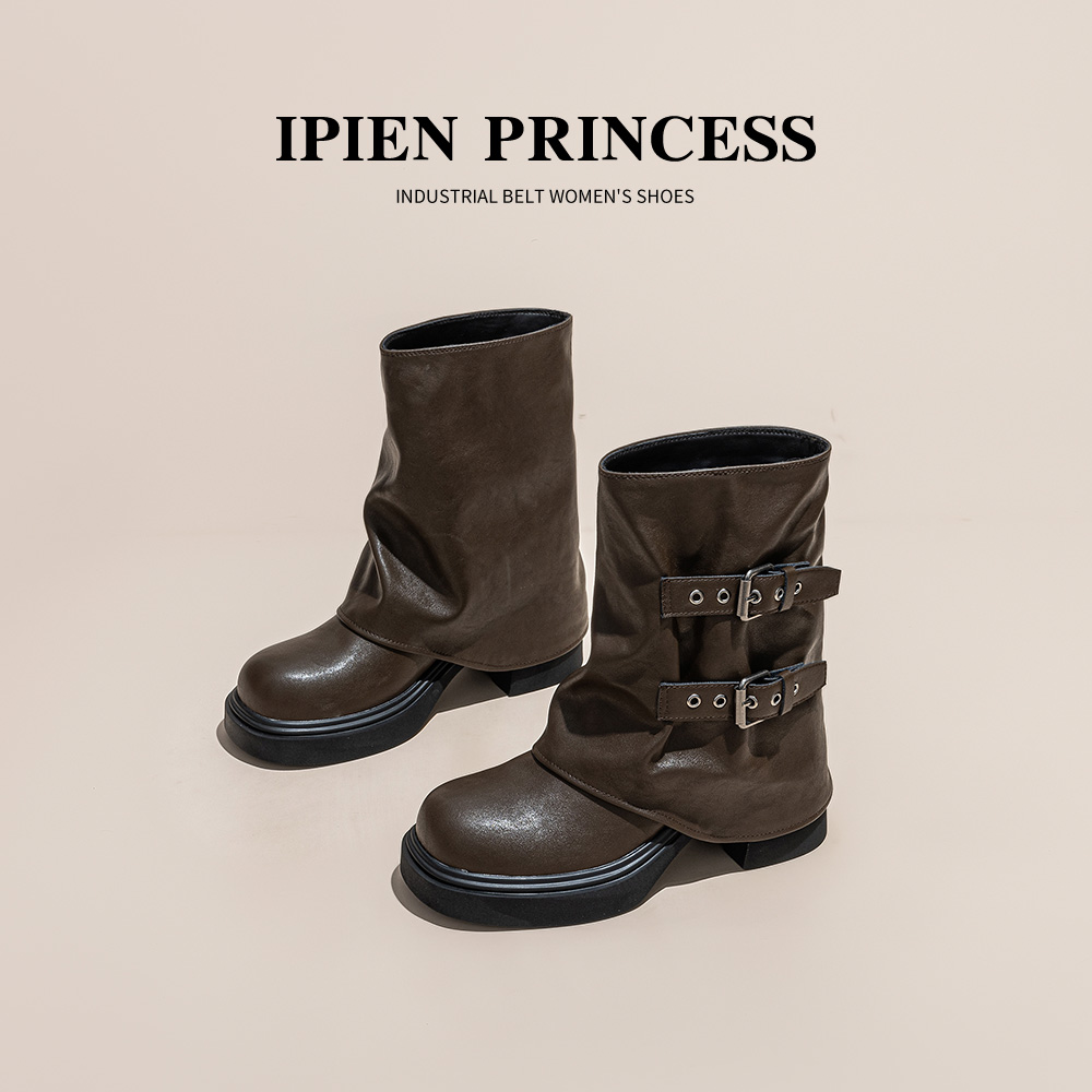 管短靴 棕色复古美拉德厚底堆堆靴子裤 回力马丁靴女2025秋冬季 新款