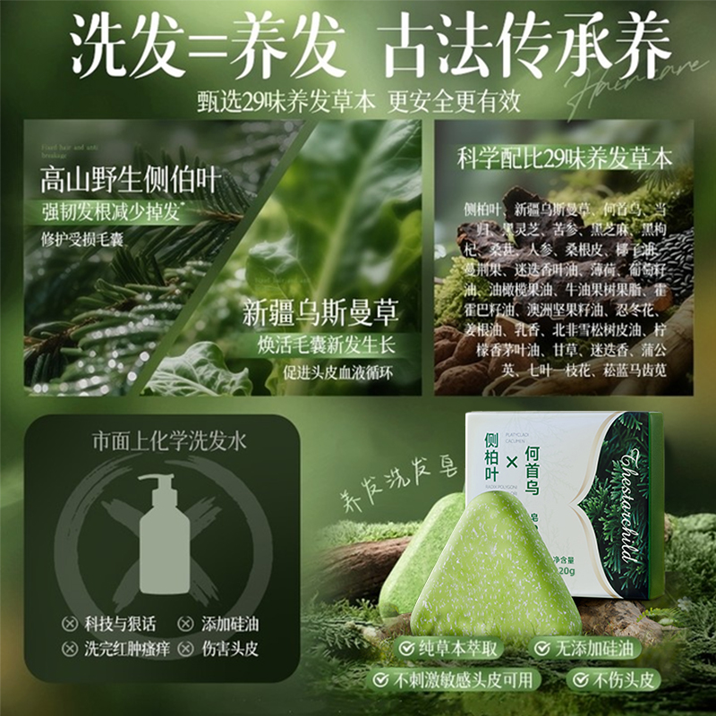 侧柏叶洗发皂新疆乌斯曼草中药黑何首乌手工水控油去屑正品 旗舰店