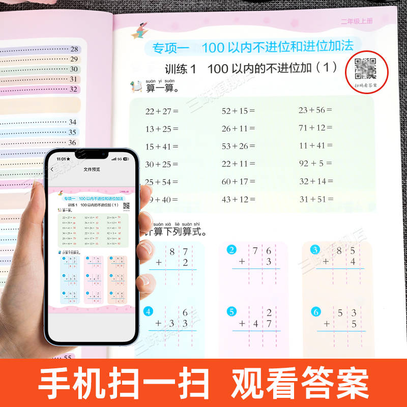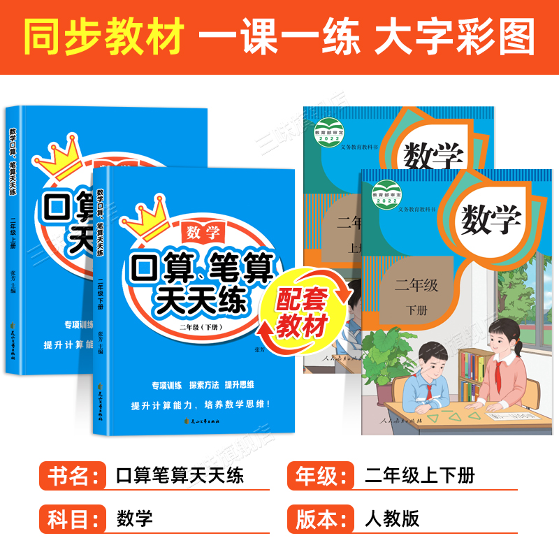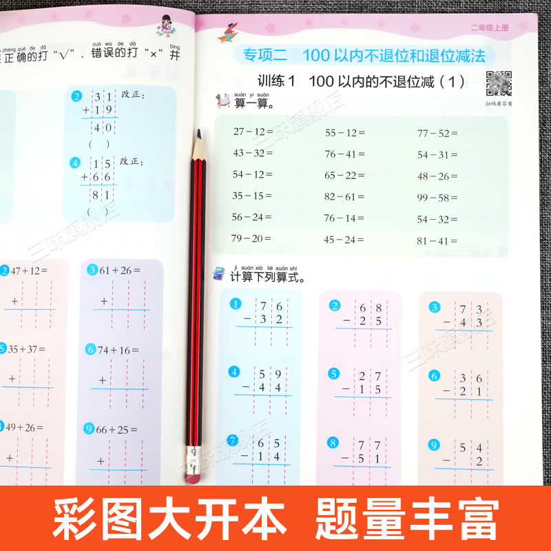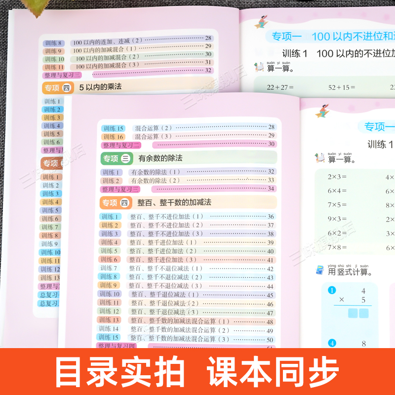 专项训练同步练习册小学数学思维训练速算口算题卡2年级上下计算应用题专项 竖式 口算笔算天天练二年级上下册人教版 数学练习全横式