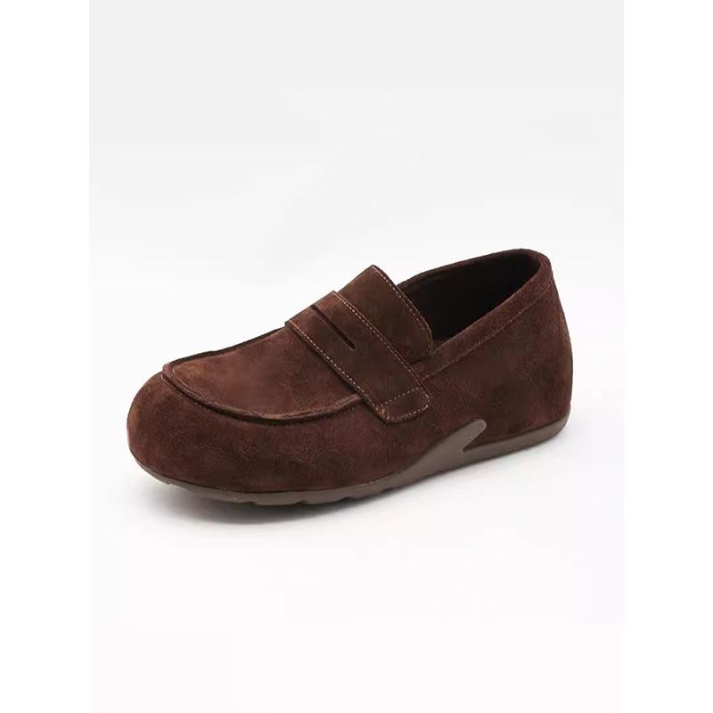 休闲通勤女鞋 2025新款 一脚蹬反绒磨砂复古单鞋 女软底豆豆鞋 乐福鞋