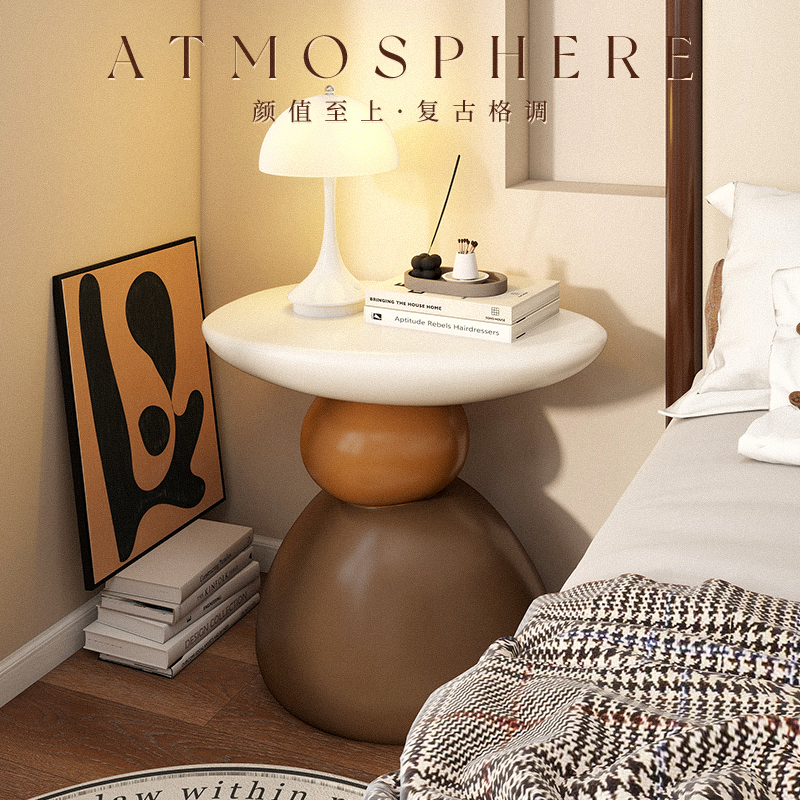 中古风创意床头柜落地灯一体卧室复古床边置物架客厅沙发边几现代