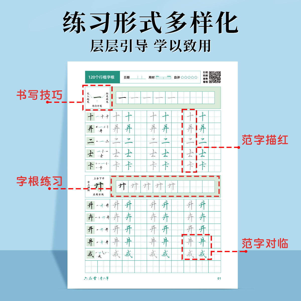 六品堂行楷行书行草 速成教程速练初中生高中生学生练习入门女生书法钢笔成年人静心练习练字帖成人反复使专用 连笔字字帖成人练字